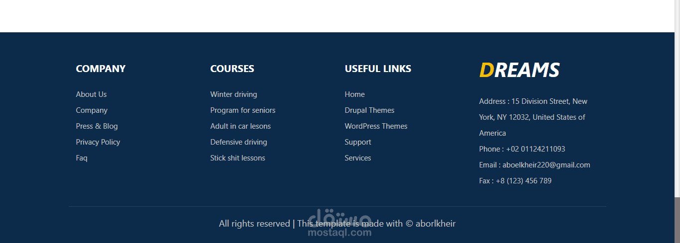 موقع به الكثير من الاقسام مصمم بلغات html , css , react , bootstrap