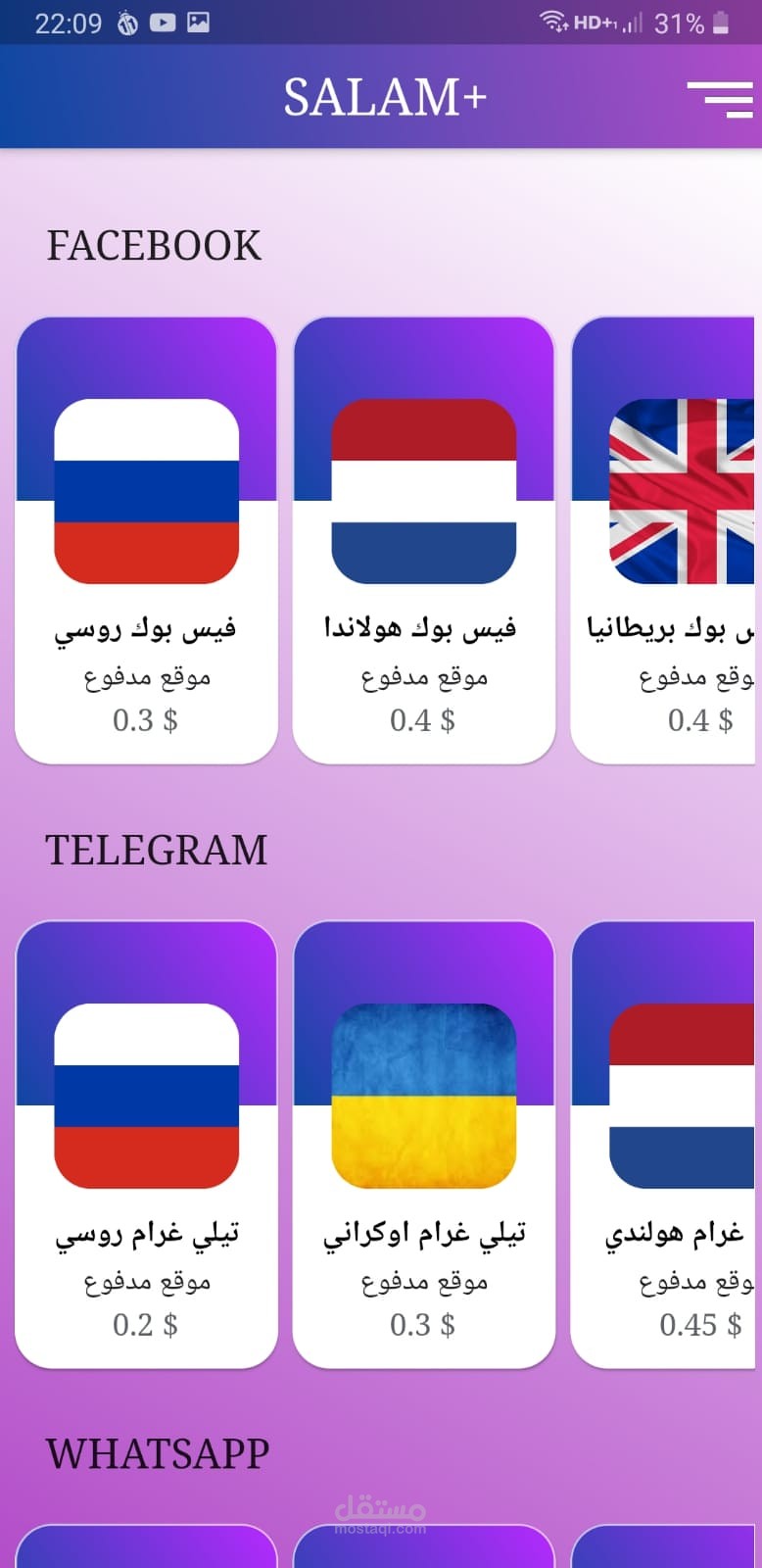متجر لبيع الخدمات و الارقام و الحسابات الافتراضية على اشهر المواقع مصمم على منصة ال flutter للاندرويد و ال ios مع برنامج Control panel و يمكنكم تصفح تفاصيل البرنامج على الرابط الخاص بالتطبيق على github