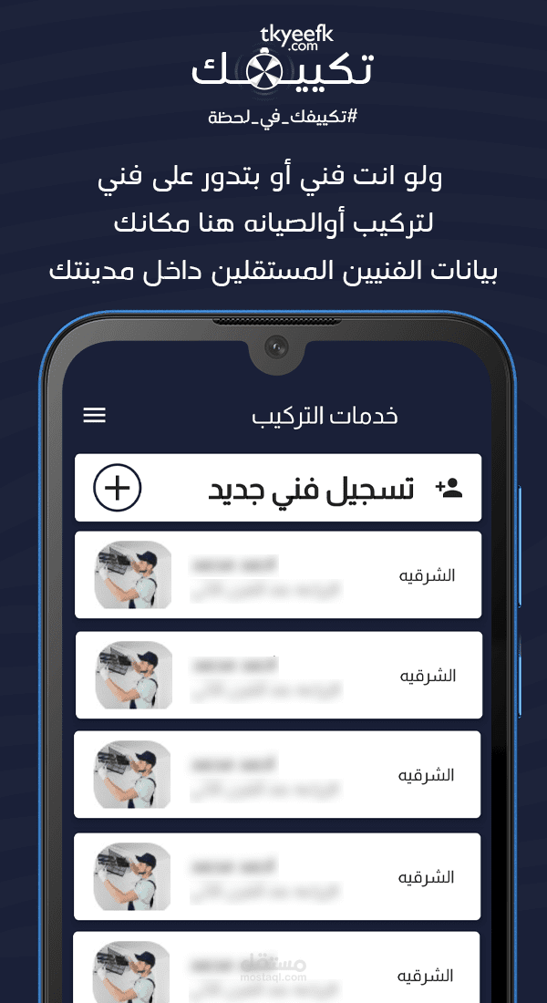 برنامج ادارة الفنيين والذي يمكنك كفني تسجيل اسمك واستقبال الاعمال الحرة من خلال عملاء تكييفك