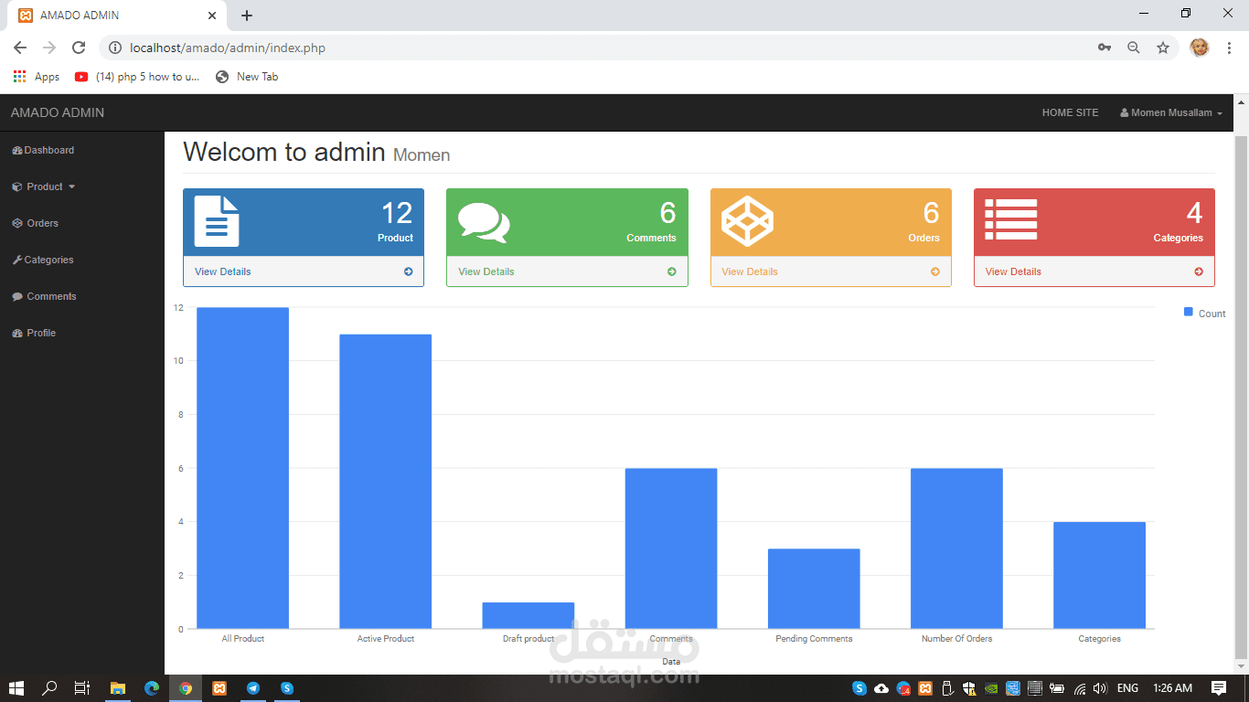 صفحة تحكم في الموقع