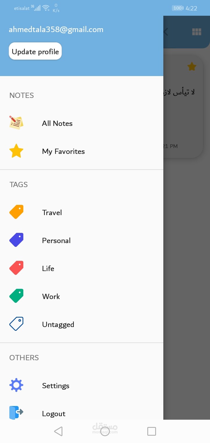 تطبيق اندرويد يستخدم لحفظ جميع ملاحظاتك بالاضافه الي وجود ميزه وهي تقسيم ملاحظاتك وترتيبهم