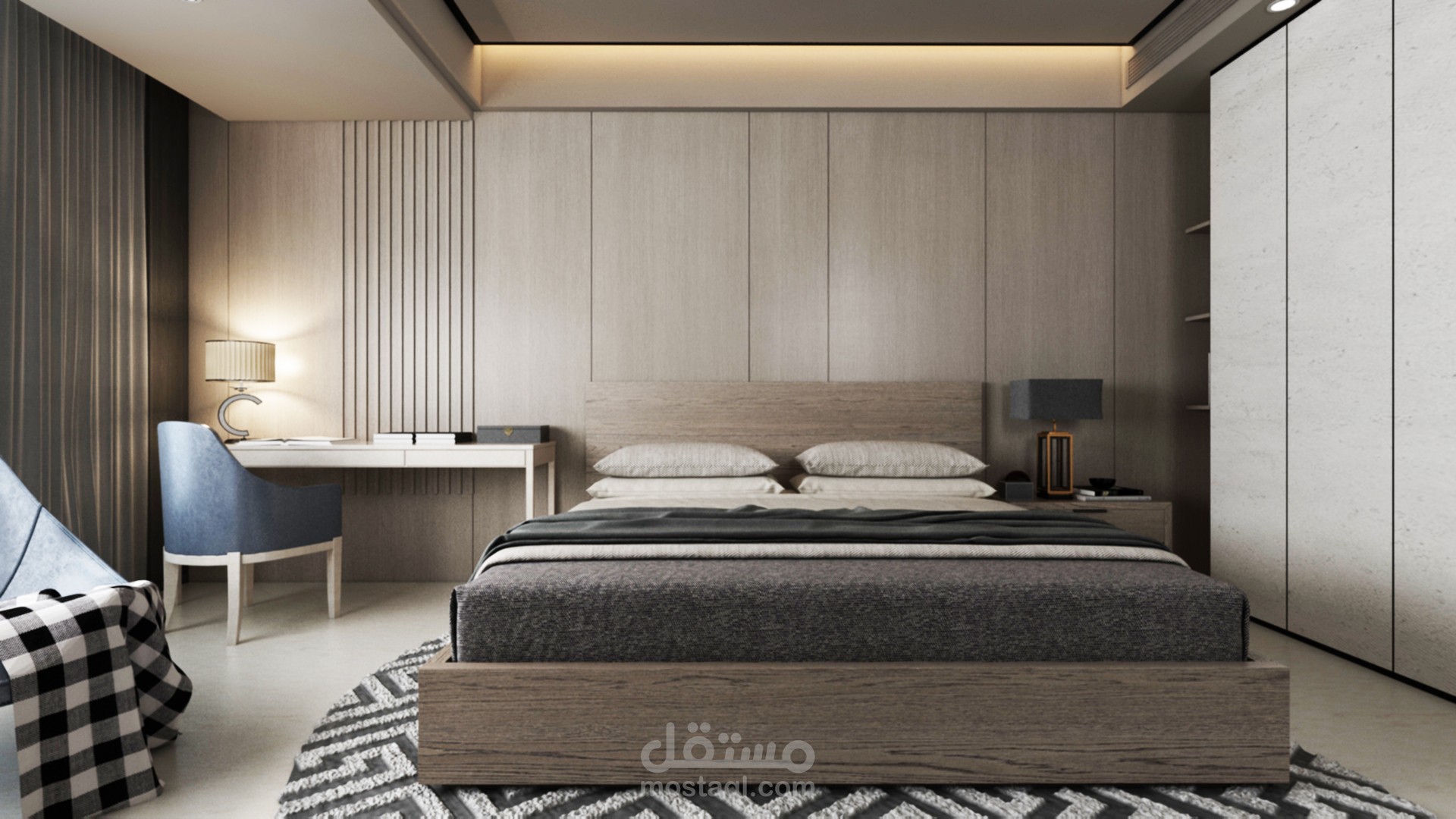 تصميم غرفة نوم تعتمد على الألوان الدافئة