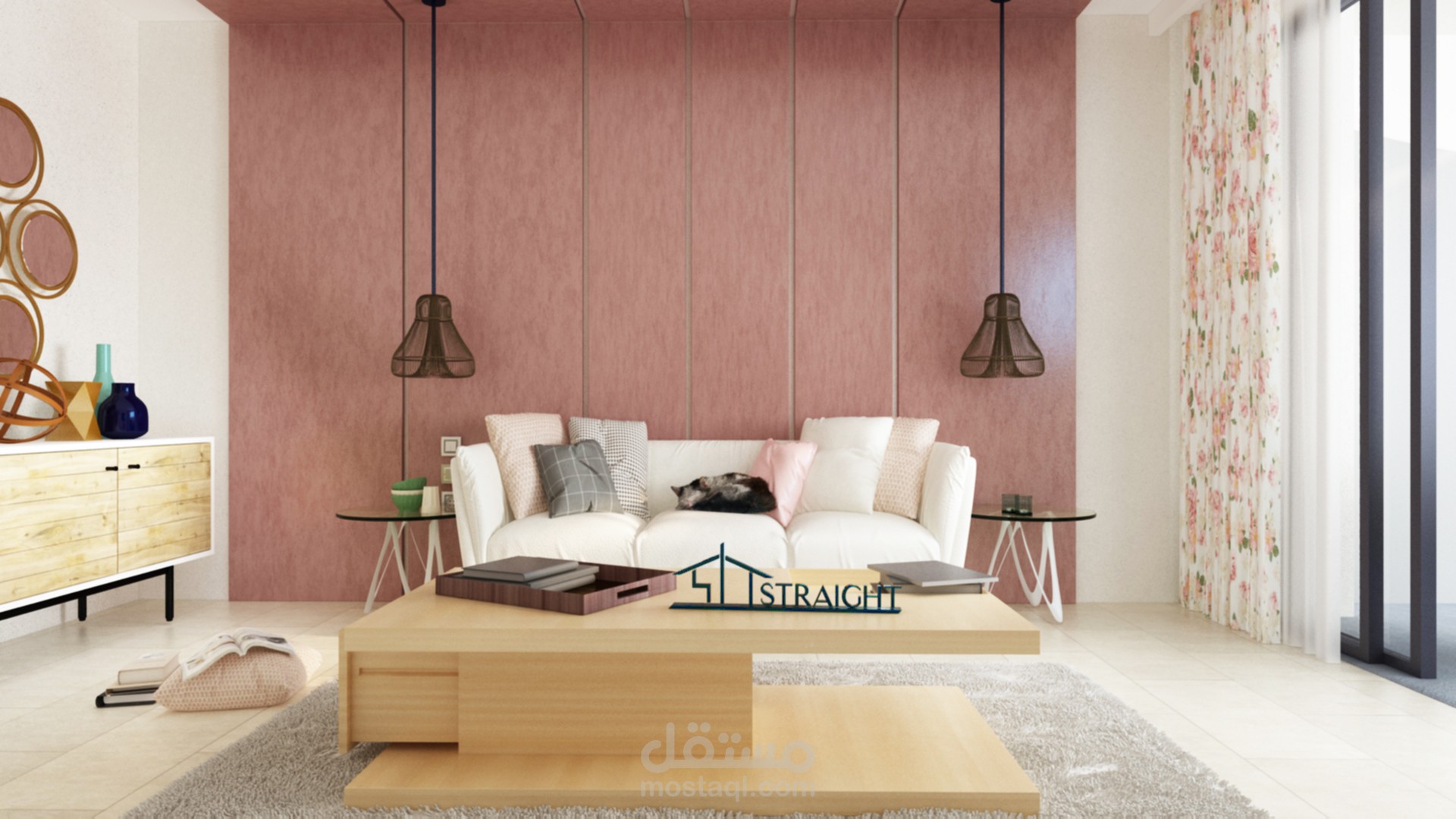 تصميم غرفة جلوس تعتمد على لون مسيطر