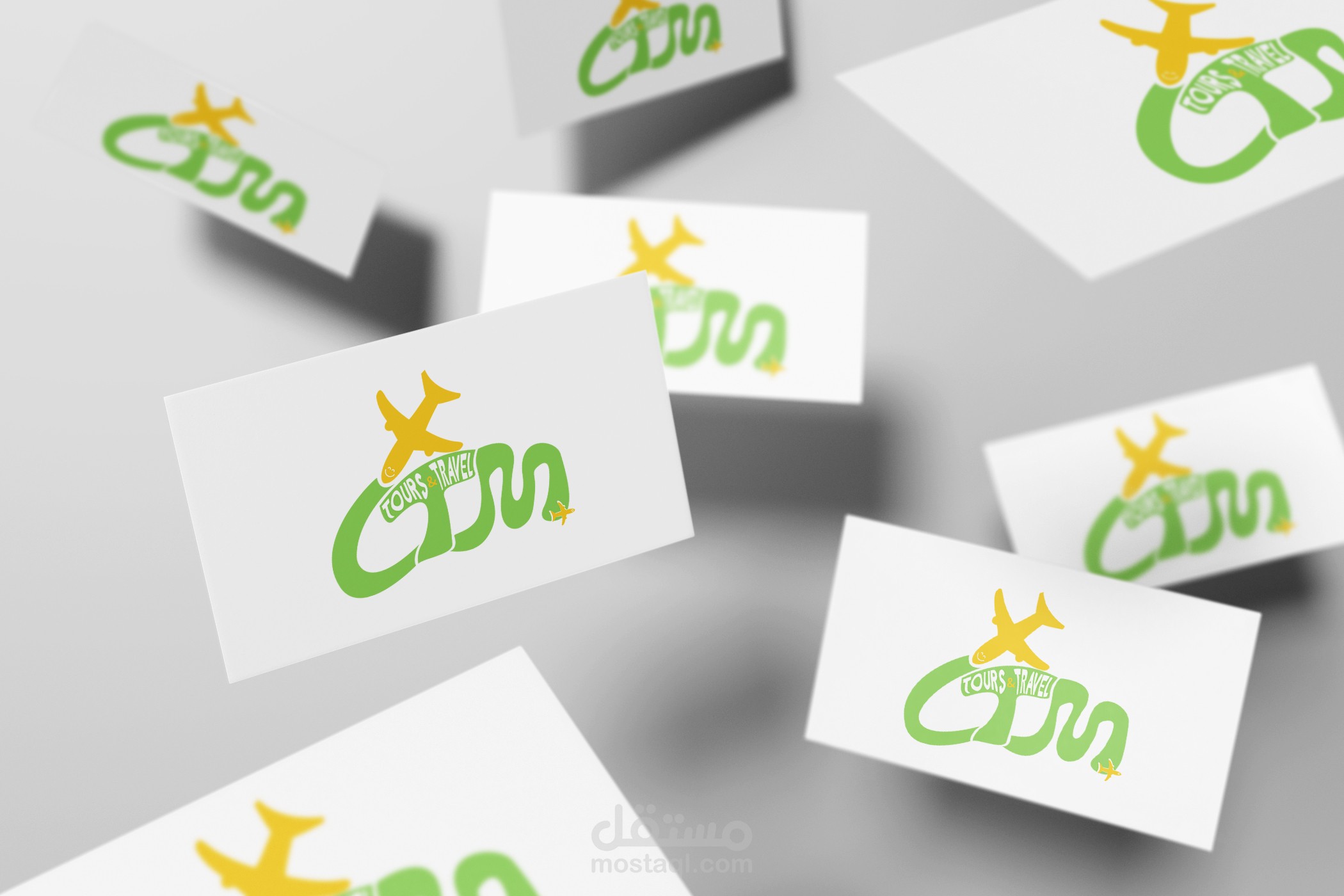 تصميم لوجو لشركة سياحية، تم عمل بزنس كارد وتم إضافة التصاميم على الموك اب ليجعله جذاباً.