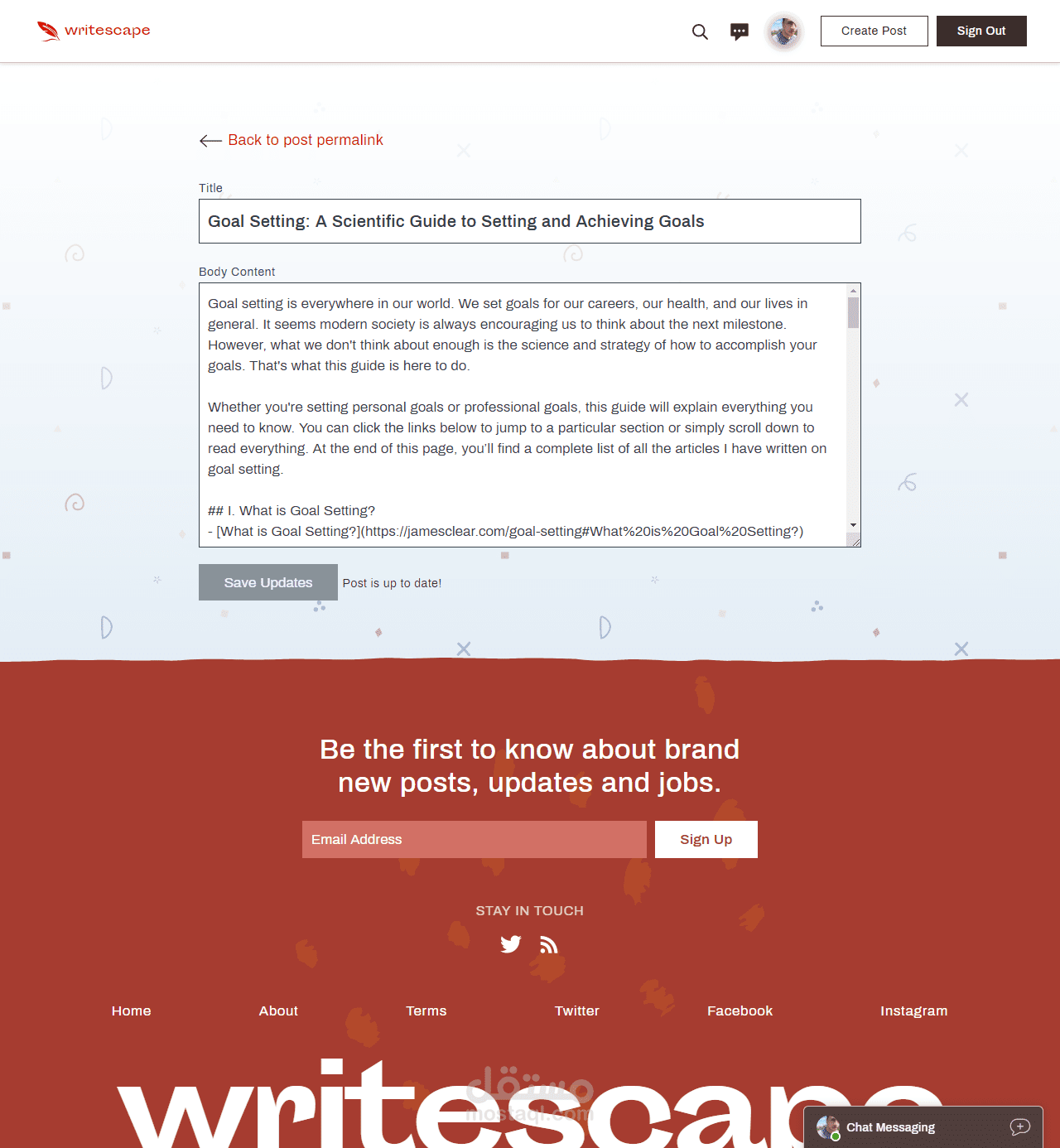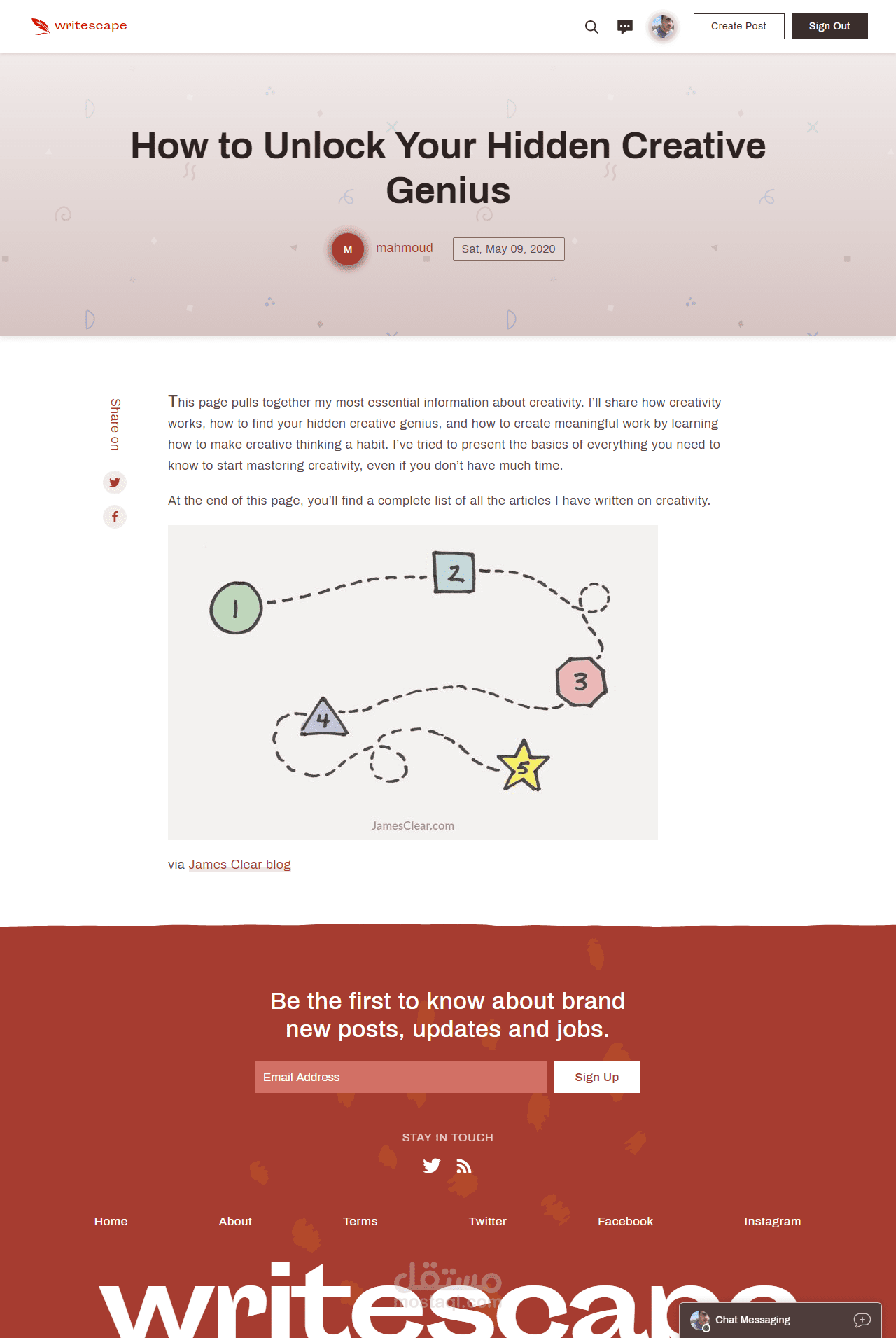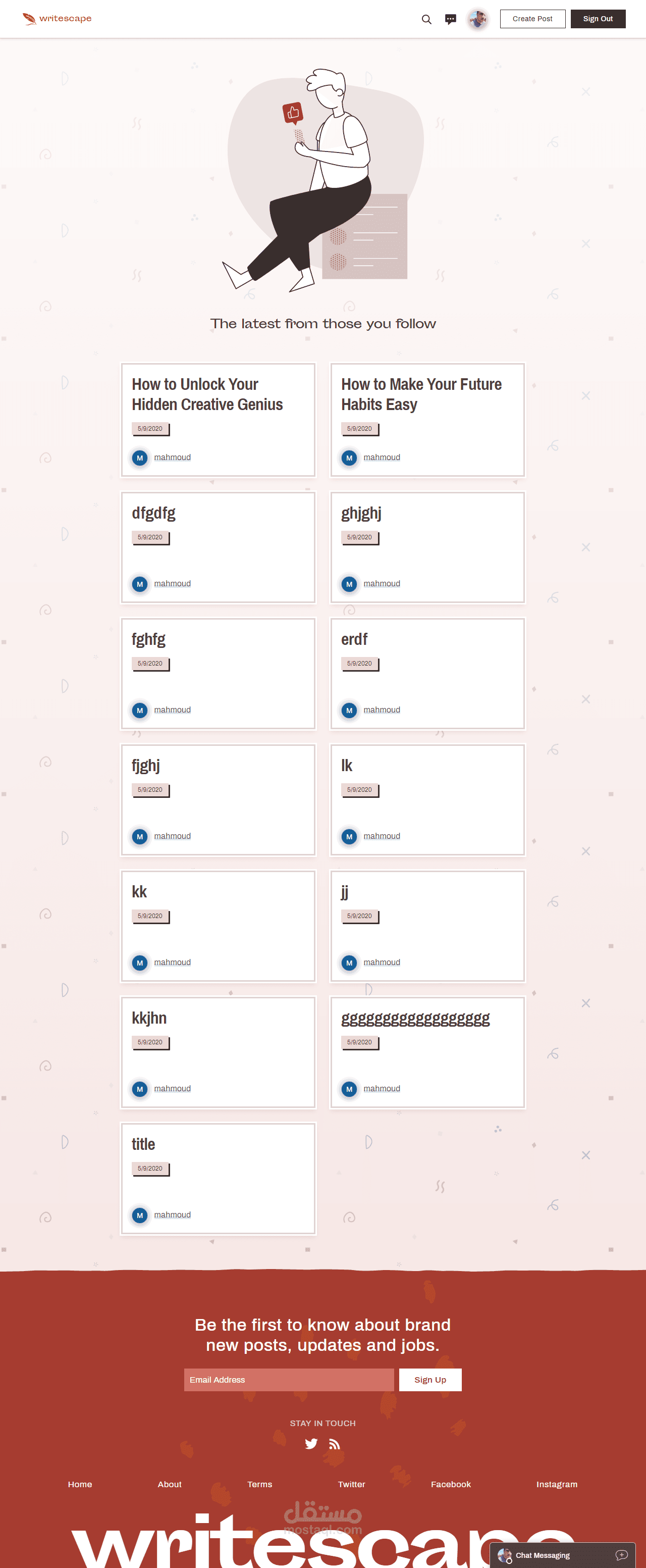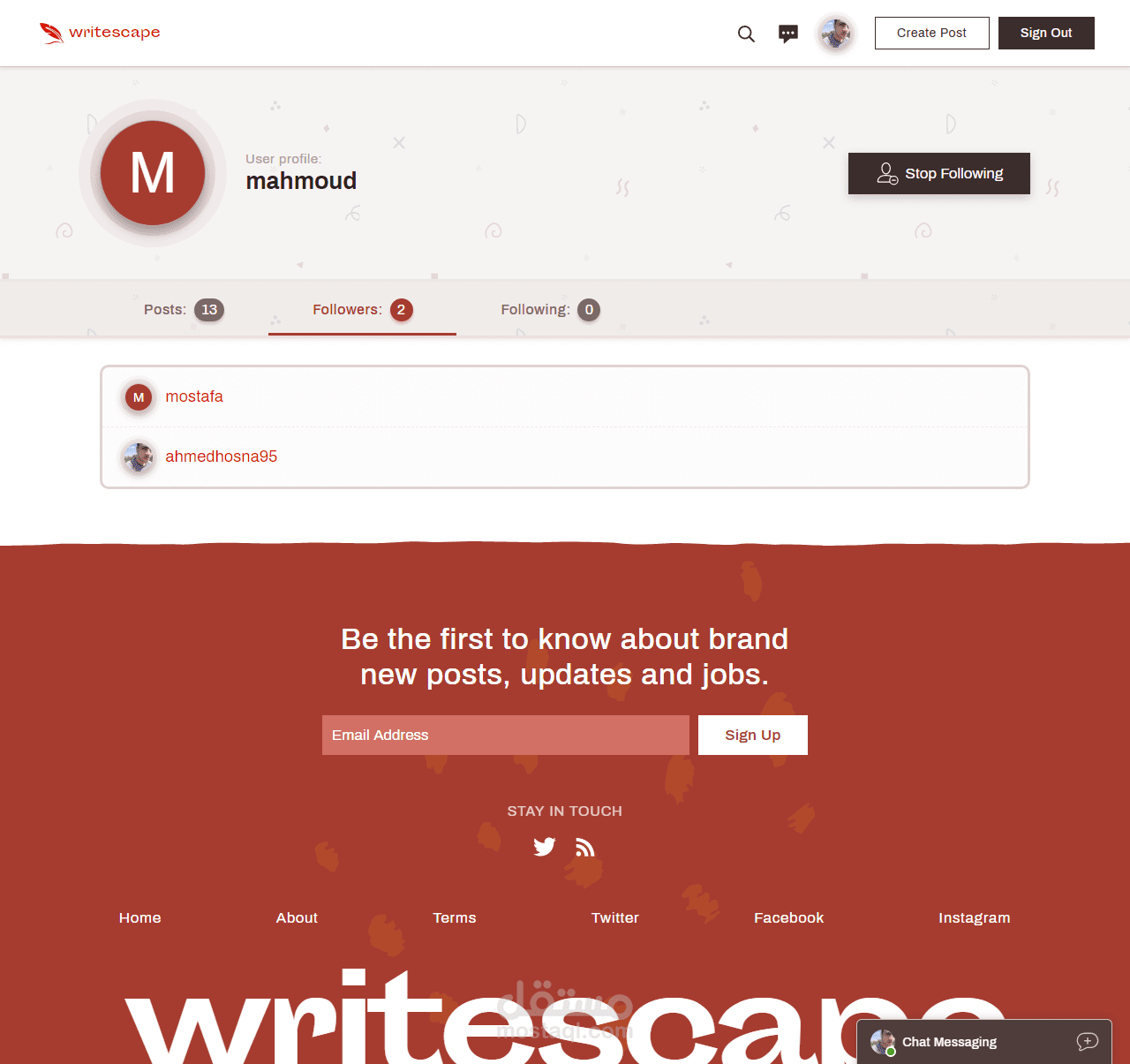 تطبيق Writescape - شبكة اجتماعية صغيرة للكتابة