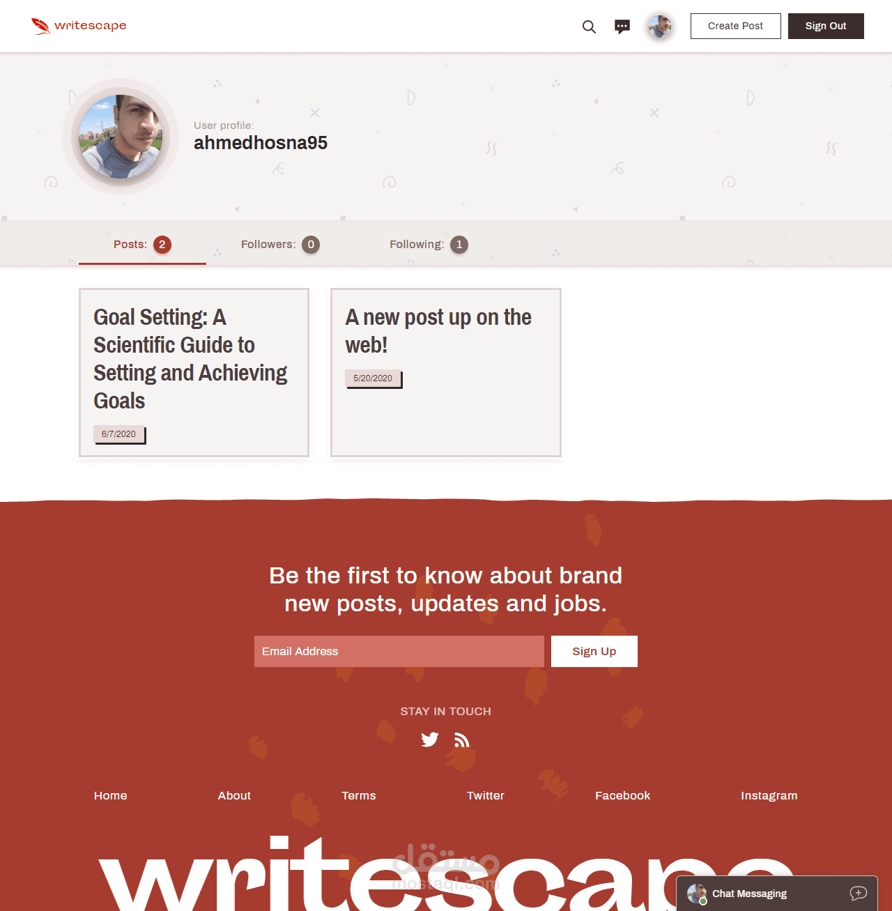 Writescape is a modern full-stack single-page app (SPA) hosted and deployed on Netlify. Both the front-end and back-end are built in JavaScript - (MERN) Stack.
