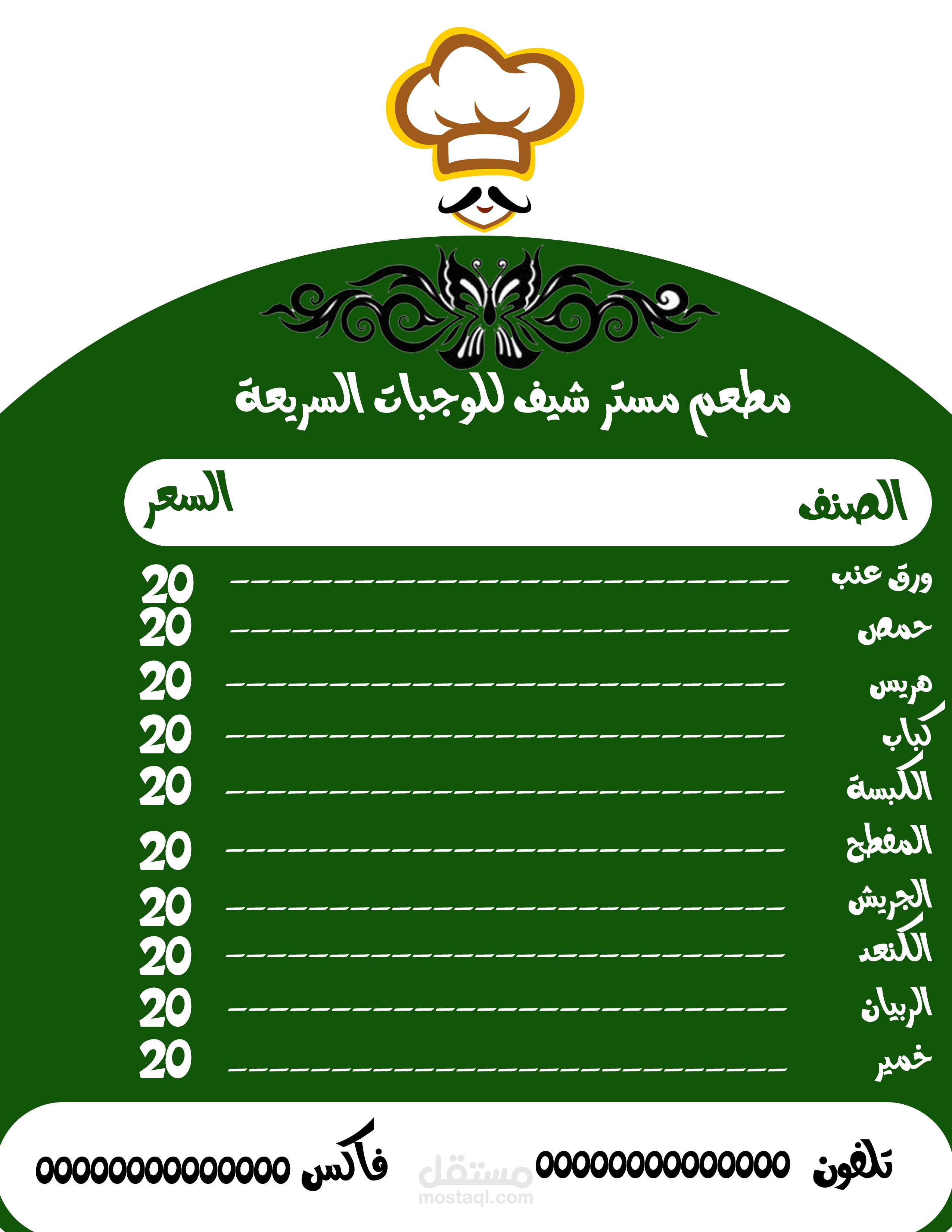 مرحبا بكم اقدم لكم تصميم منيو طعام بشكل مميز وجذاب وجميل