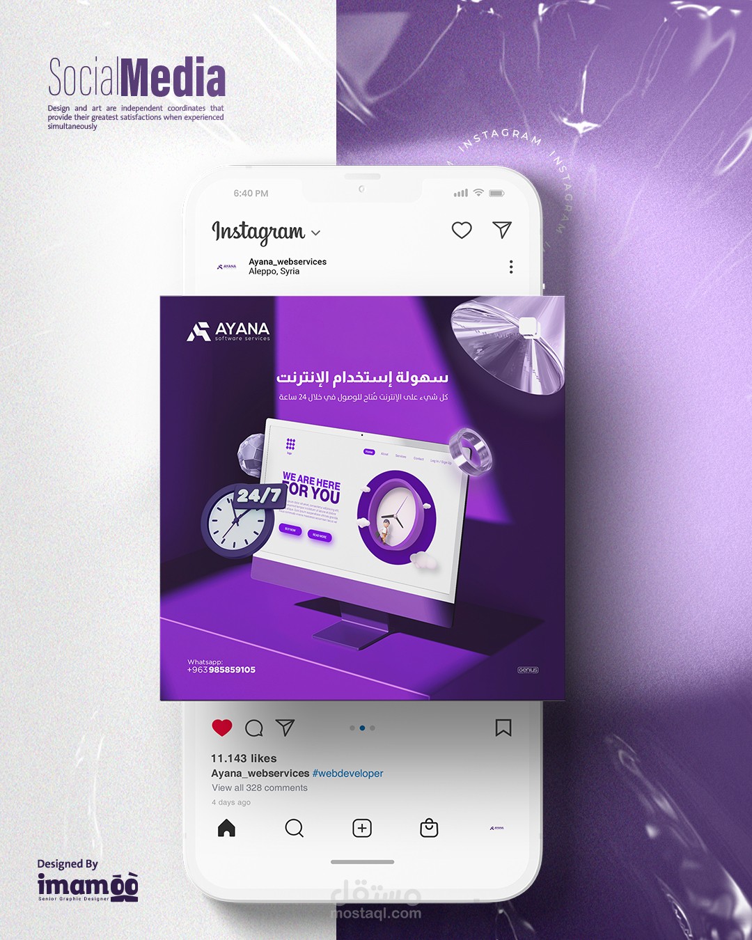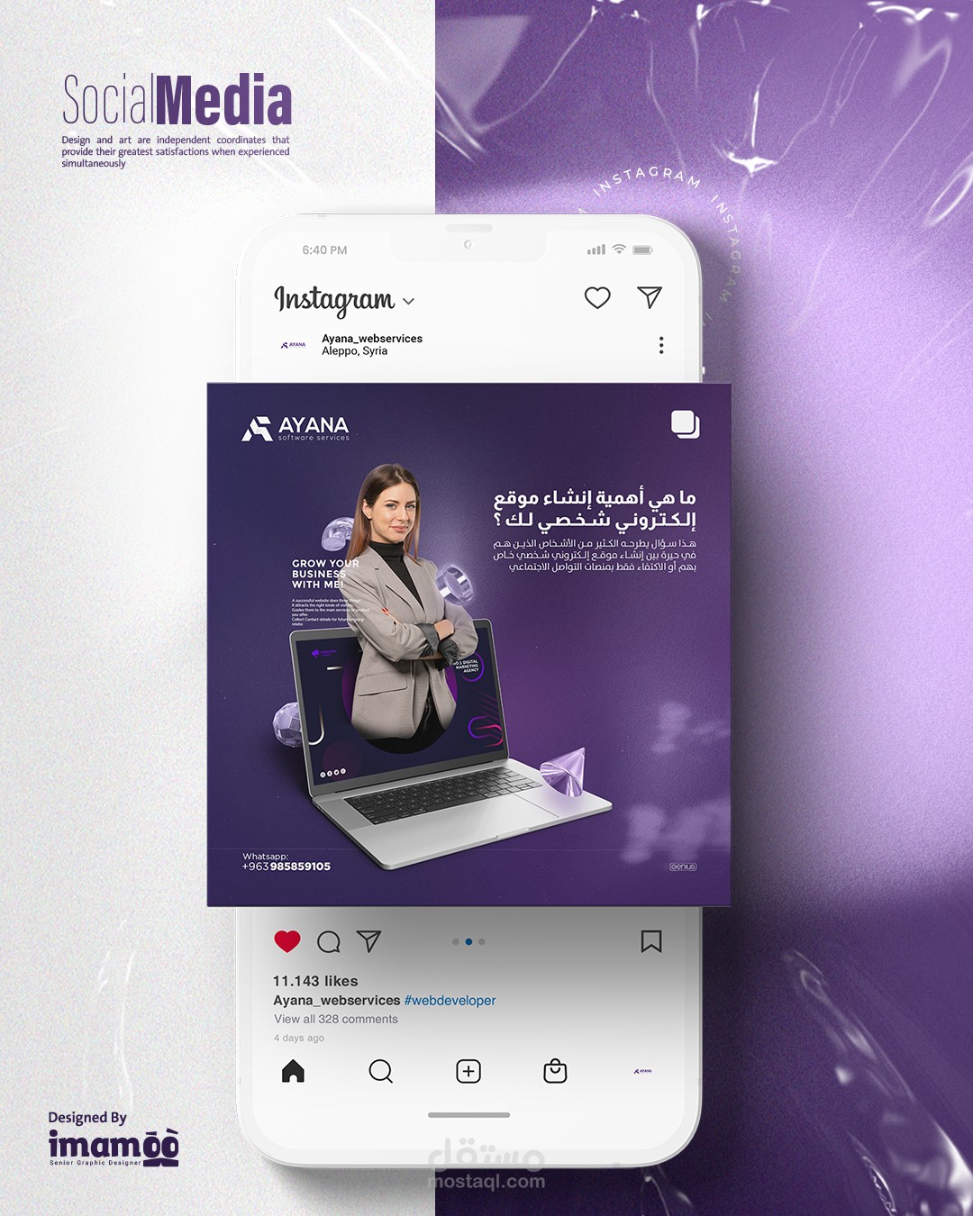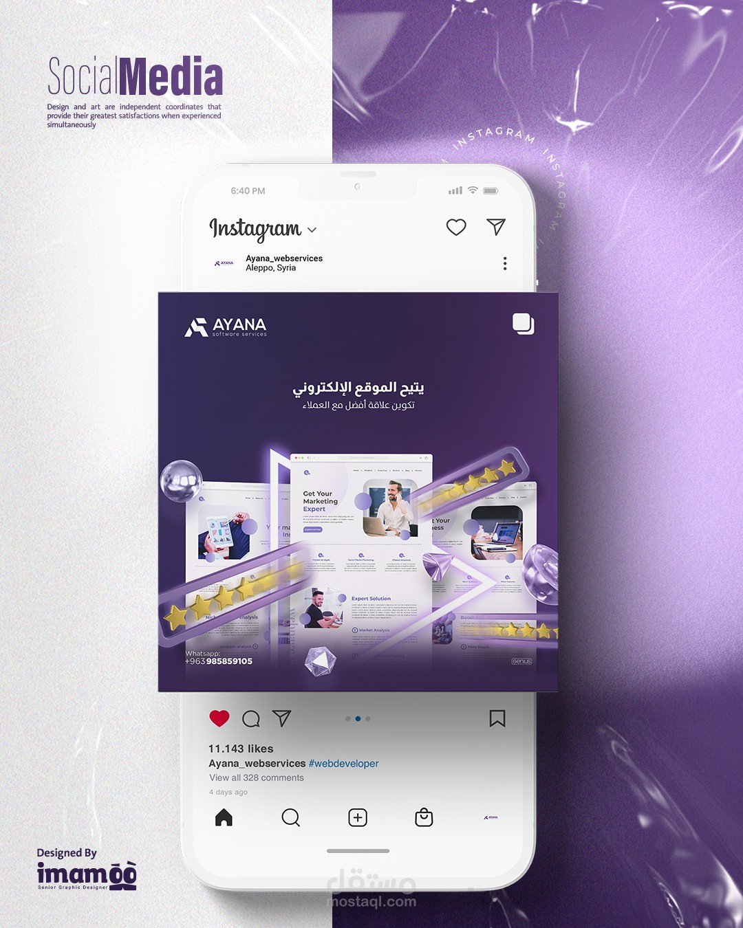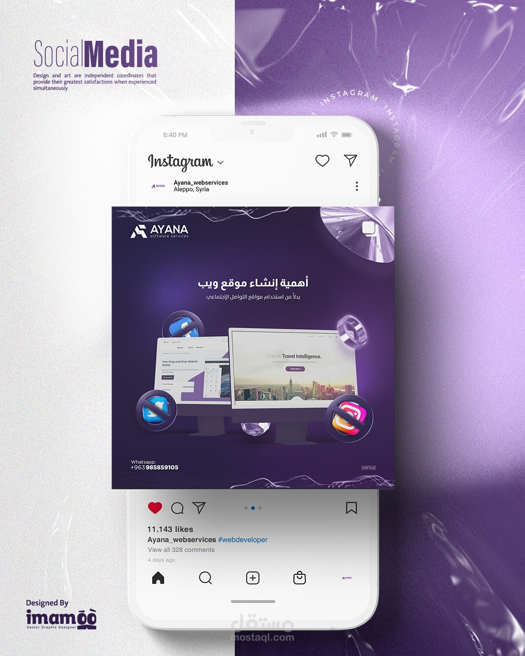 Introduction: I spearheaded multiple social media publications and campaigns for Ayana, a prominent website design company in Aleppo, Syria. The campaigns were meticulously designed to embody the essence of the company's work, integrating a consistent design element. I prioritized the integration of Ayana’s distinctive visual identity colors to ensure top-notch quality in our marketing endeavors