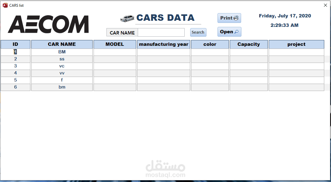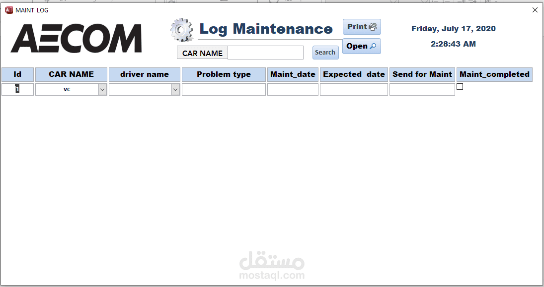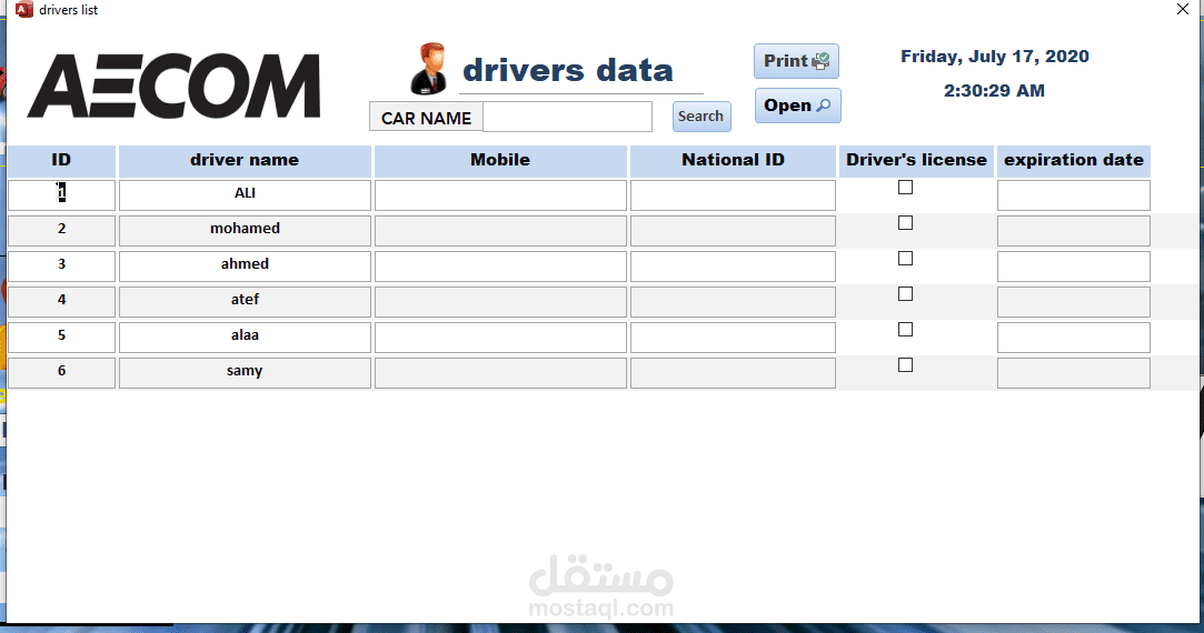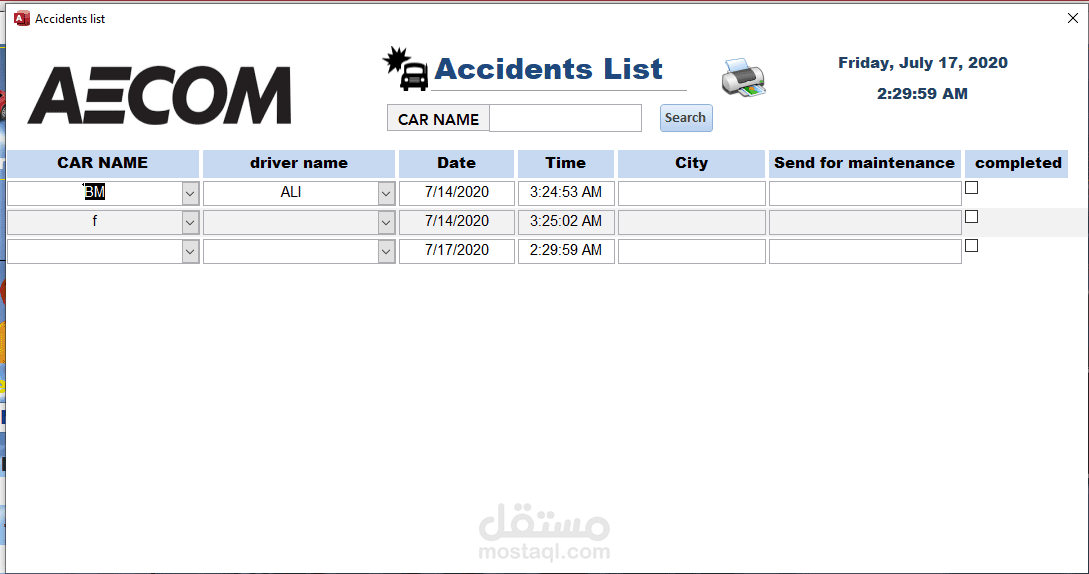 برنامج ادارة تأجير وصيانة السيارات على الاكسس