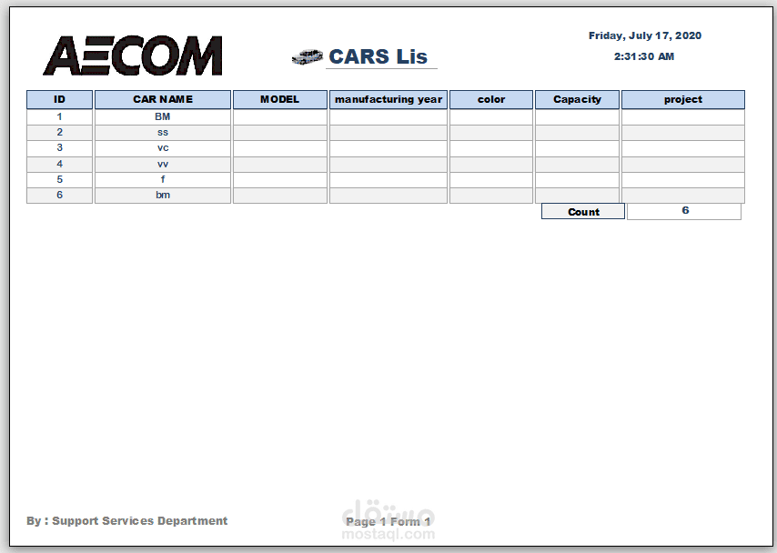 تقرير بالسيارات التى تم عمل صيانه لها