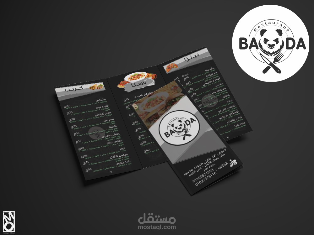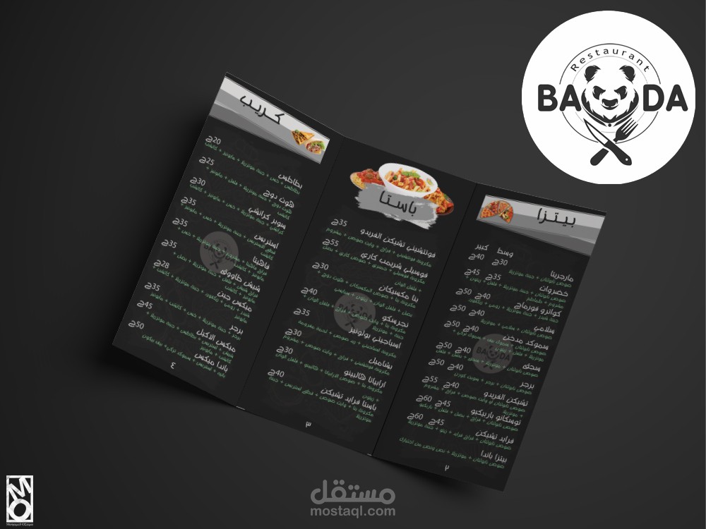 عمل منيو كامل لمطعم وجبات سريعه مع تصميم جيد مرضي للعميل حيث تم استخدامه في الطباعه و الدعايه للمطعم .