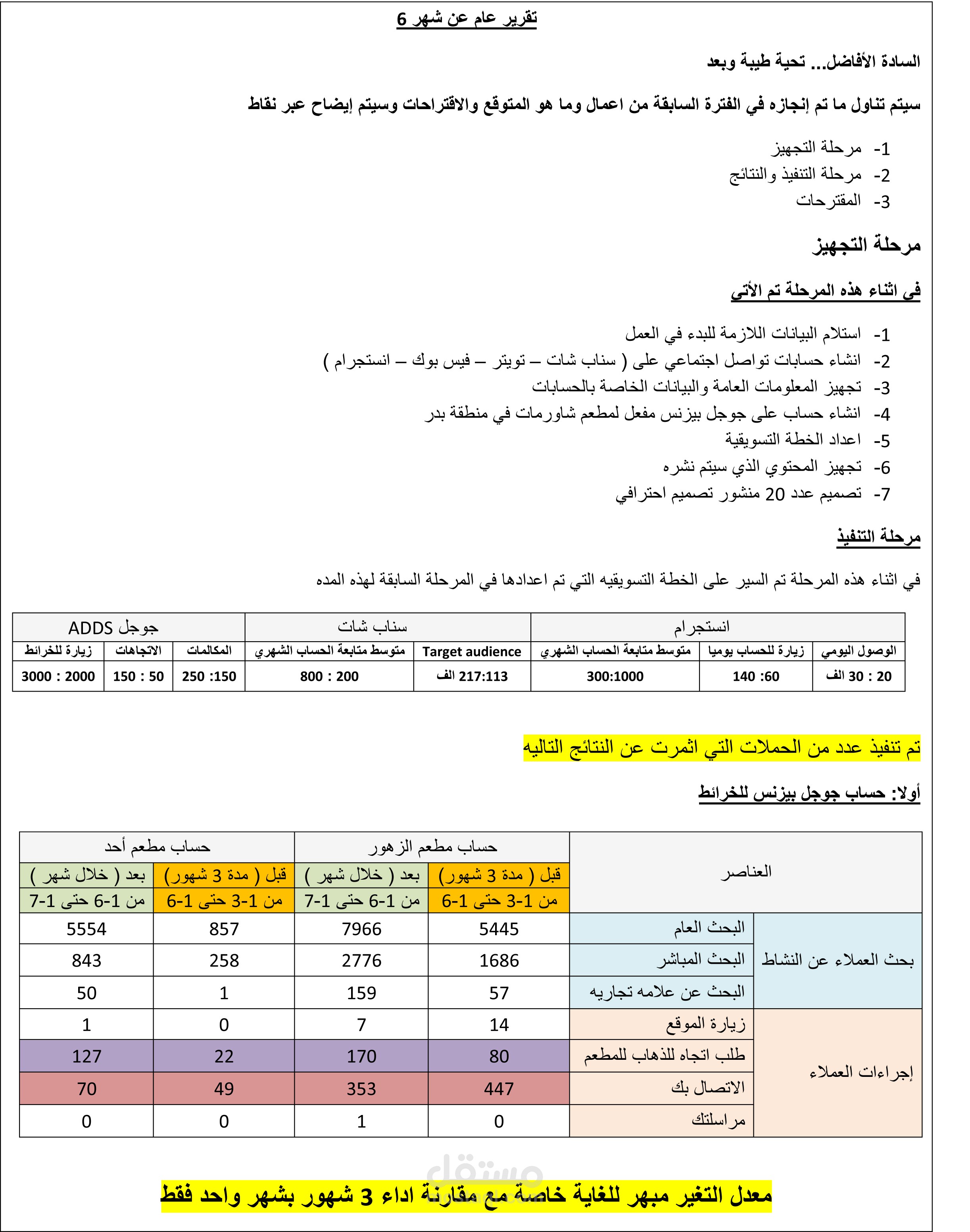 نتائج خطة تسويقية لمدة شهر واحد فقط