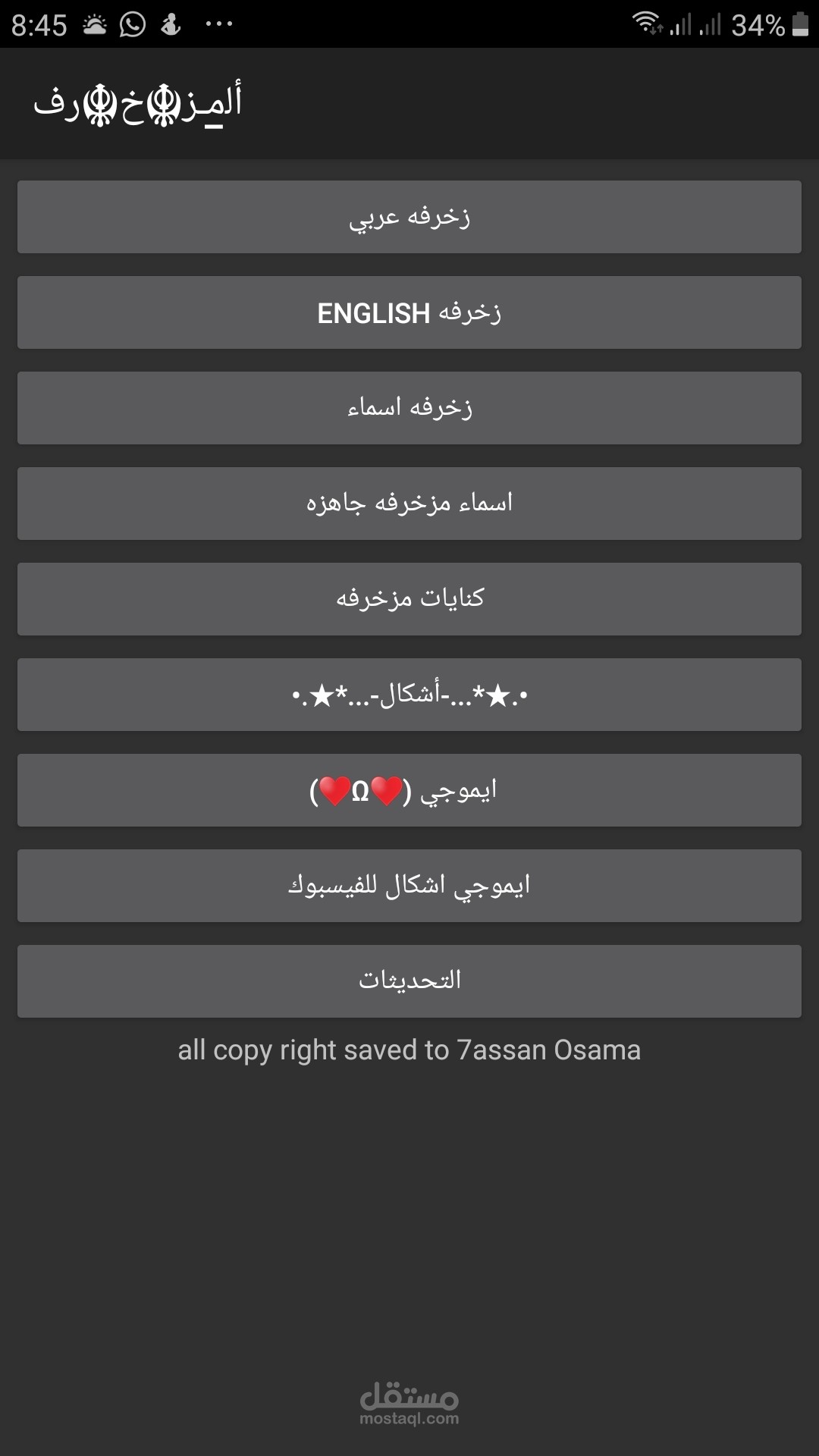 تطبيق الزخرفه العربيه والإنجليزية يوجد داخل التطبيق ١ - زخرفه عربيه عددها اكثر من ٥٠ زخرفه