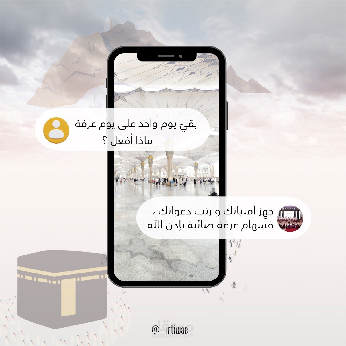 هذا التصميم يركز على أهمية يوم عرفة وفضله، مع توجيه القارئ نحو اغتنام هذا اليوم بالدعاء والعبادة.