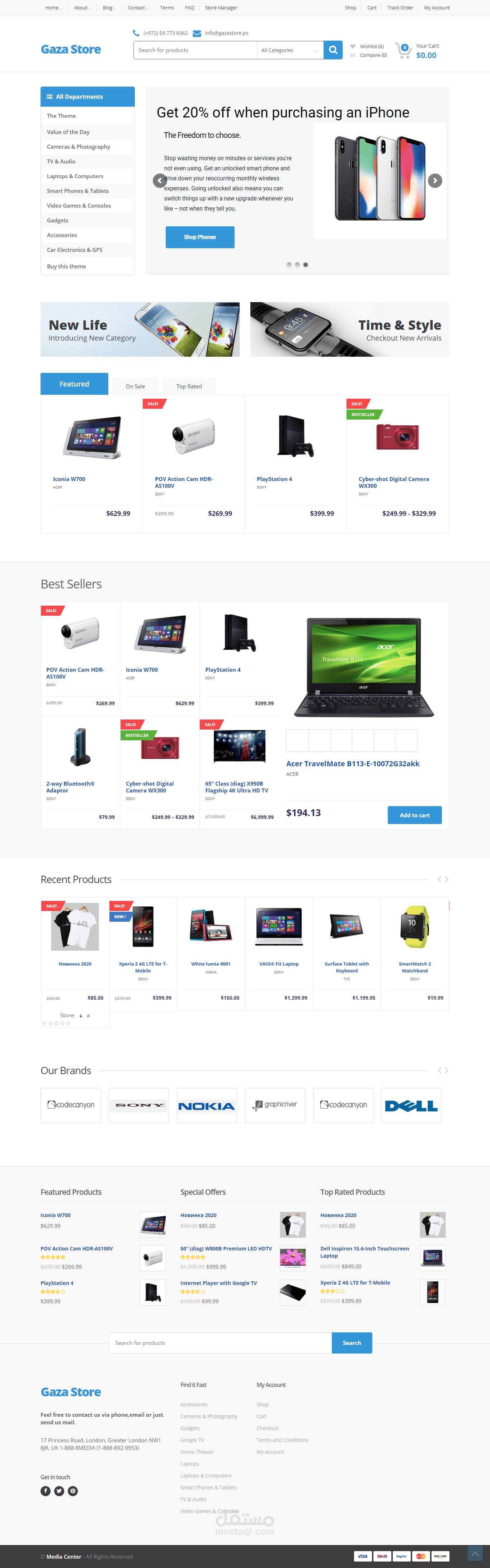 تم تصميم موقع Gaza store هو متجر الكتروني تم تصميم وبرمجته باستخدام ميديا سنتر وتم استخدام العديد من الاضافات (plugin) منها