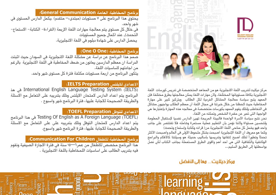تصميم مجموعة من الكتيبات (مؤسسة المنال العالمية، مركز بابوجي لطب وزراعة الأسنان، مركز ديلايت لتعليم اللغة الإنجليزية، ليد تك، منن فاشون، جامعة السودان العالمية)