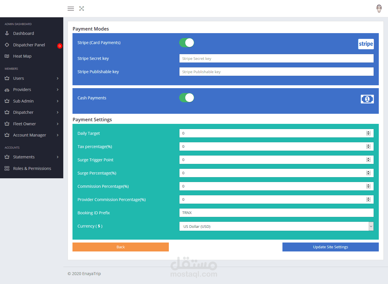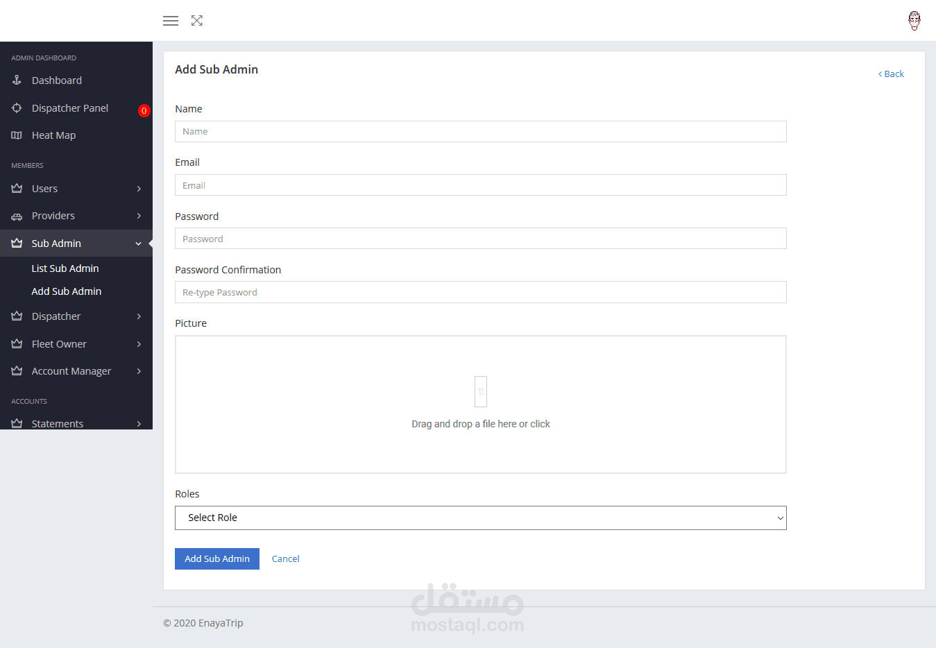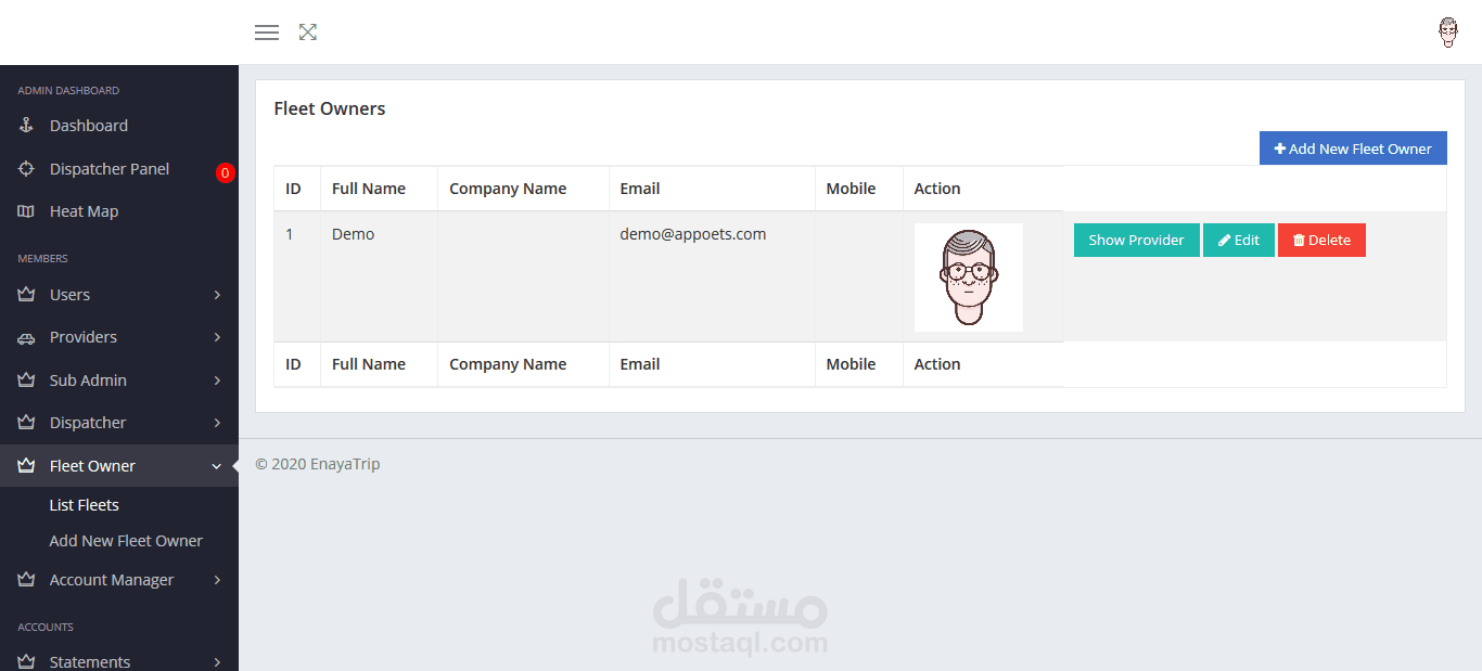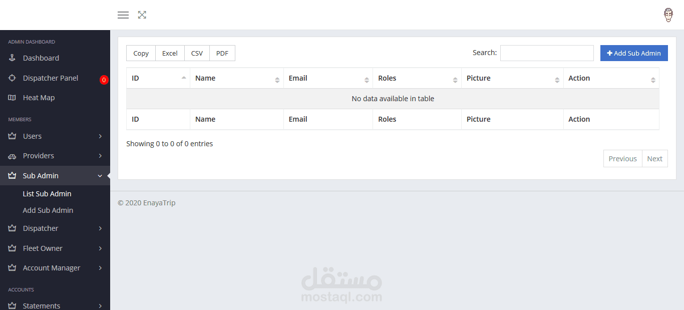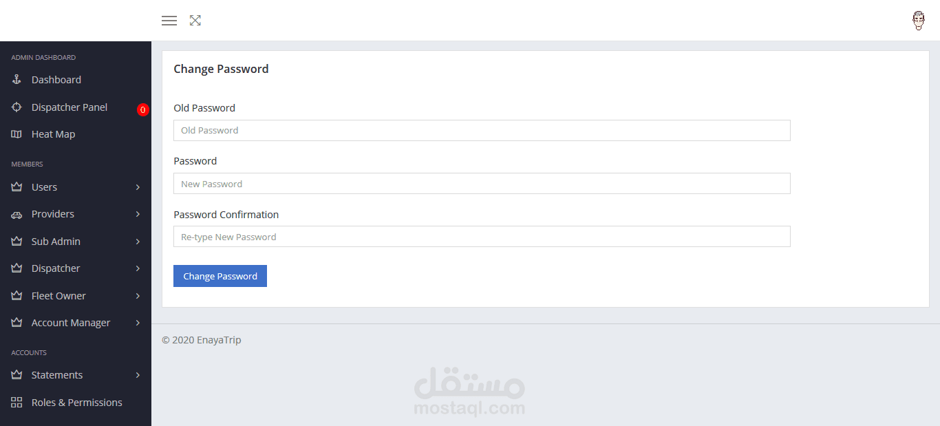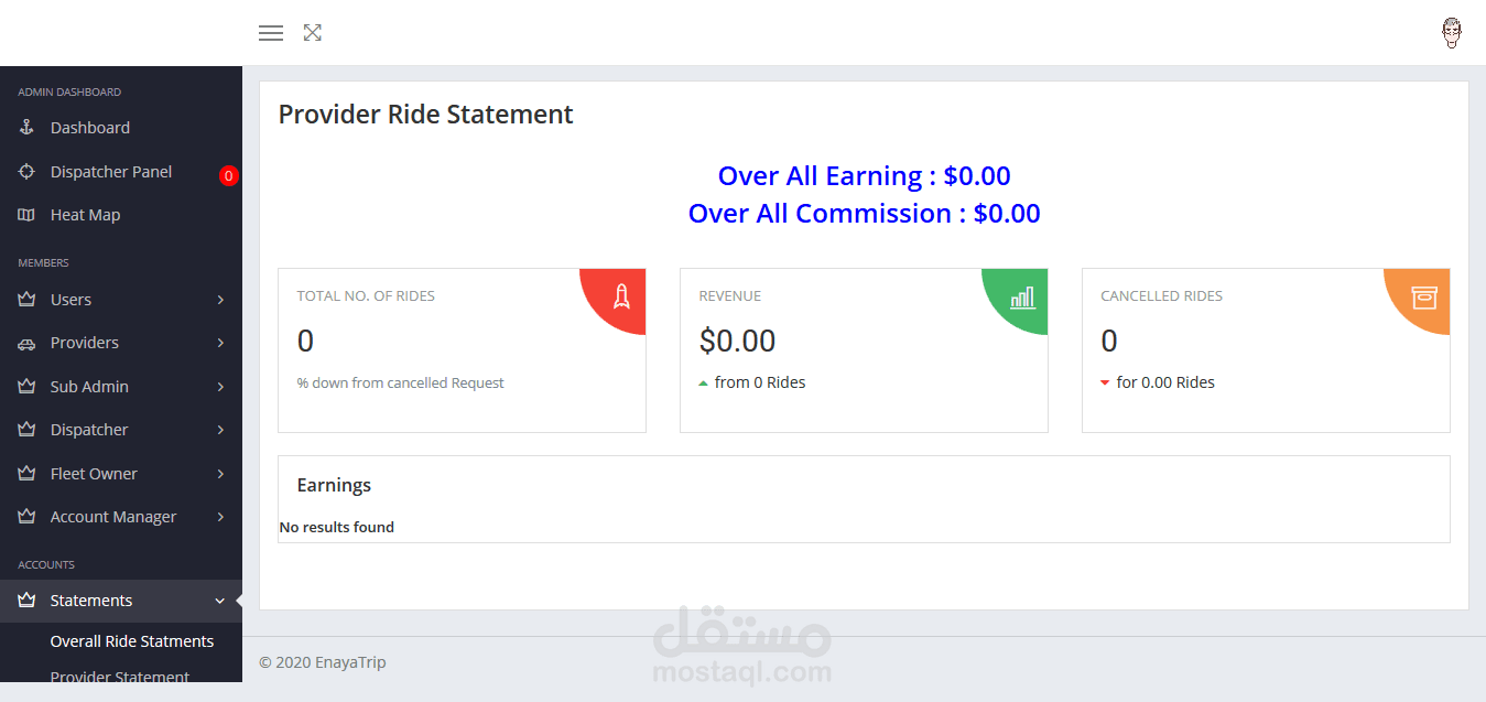 عبارة عن لوحة تحكم لتطبيق طلب سيارة أجرة. عن طريقها يمكن للآدمن مراقبة كل الطلبات المتوفرة وإضافة مستخدمين جدد أو حتى حذف بعض المستخدمين. كما تحتوي لوحة التحكم على نظام تحقق (authentication) عالي الدقة يوفر لحساب الآدمن أقصى درجات الحماية.