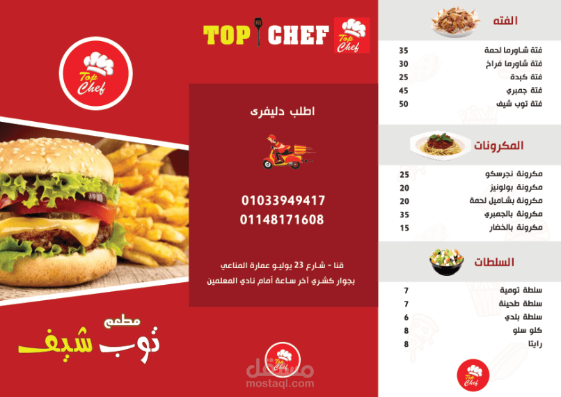 تصميم menu لمطعم top chef بإستخدام برنامج الإنديزين