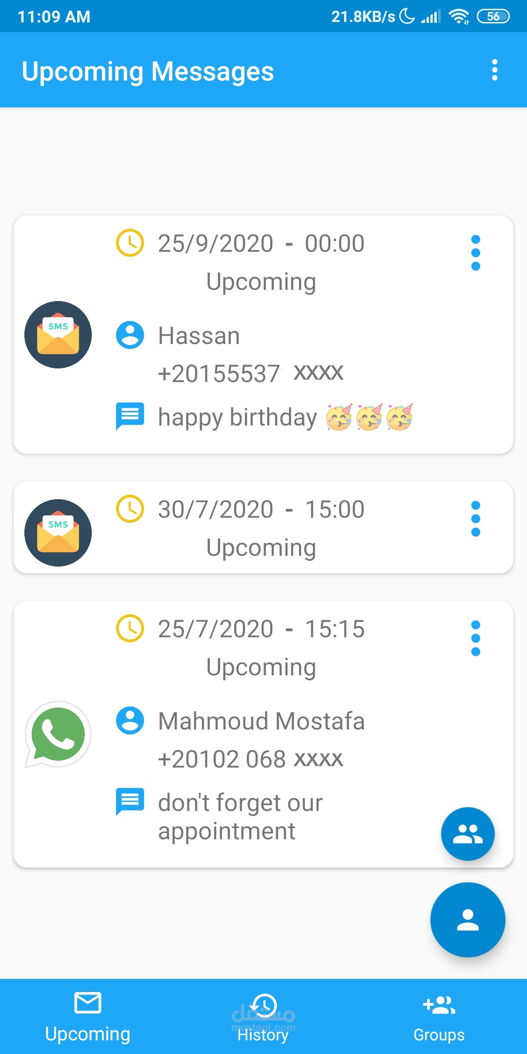 ⭐️ إرسال رسائل نصية تلقائيًا (sms - whats-app) في المستقبل.