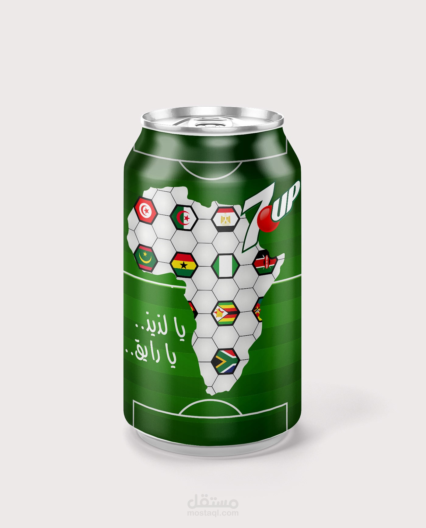 African 7UP can design for the African games of football which will be in Egypt. In the first design i used football stadium and developed the shape of the African continent with the football texture and placed inside it the flags of the African countries participating in the tournament.