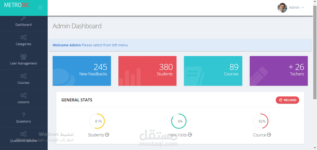 صلاحيات خاصه تمنح لكل من المعلم والطالب والاداري ايضا عن طريق لوحه التحكم