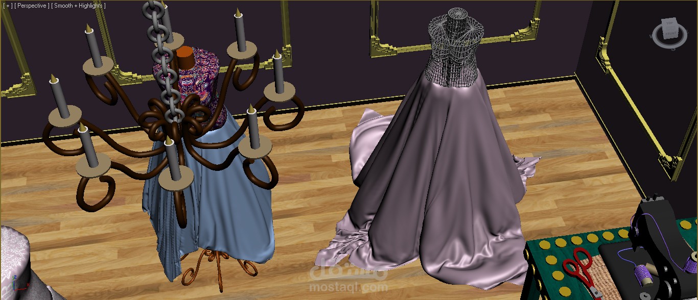 كافة الأعمال الموجودة و كافة القماش و المانيكان و علبة الخياطة و آلة الخياطة و كل شيء في المشروع هو بناء يدوي ولا يوجد استخدام لأي بلوكات