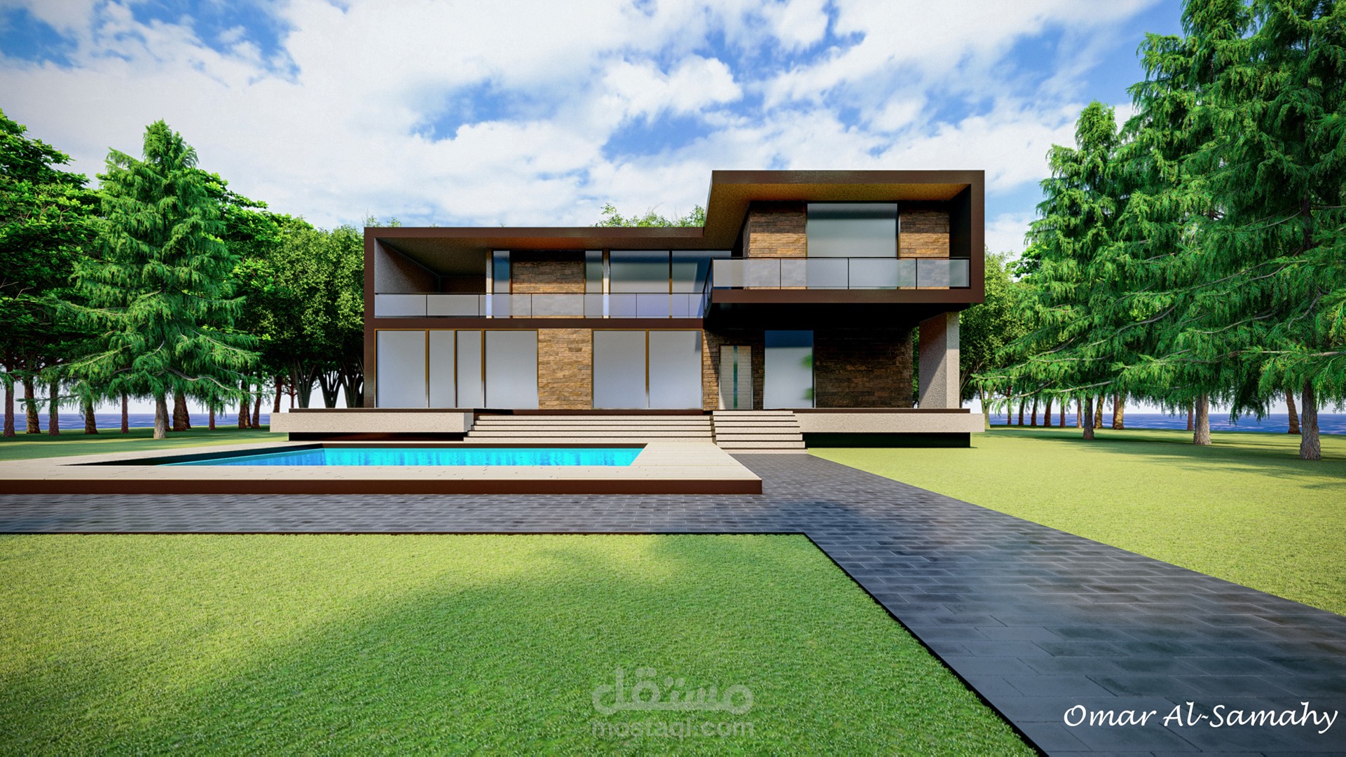 تجسيدي و اظهارى و اخراجي لفيلا مودرن باستخدام برامج ال 3D و برامج الاظهار المعماري