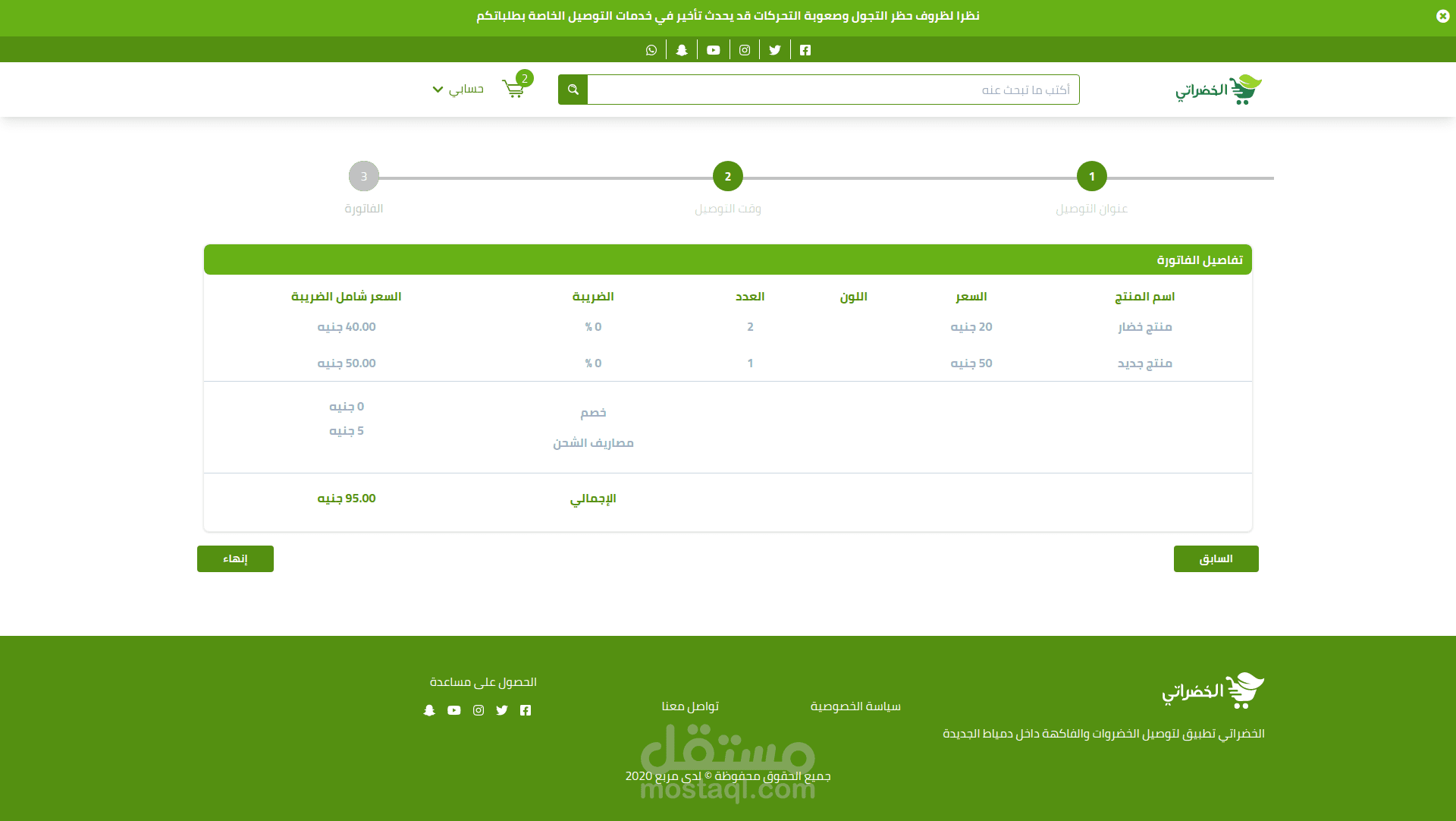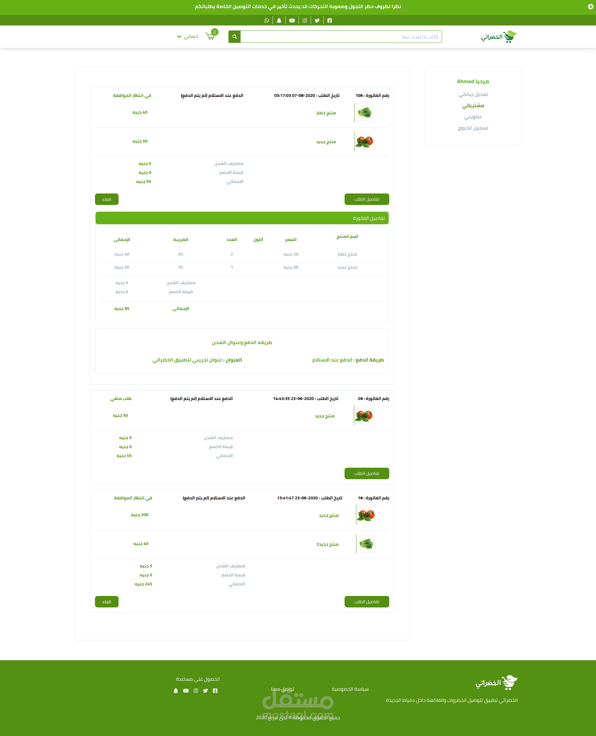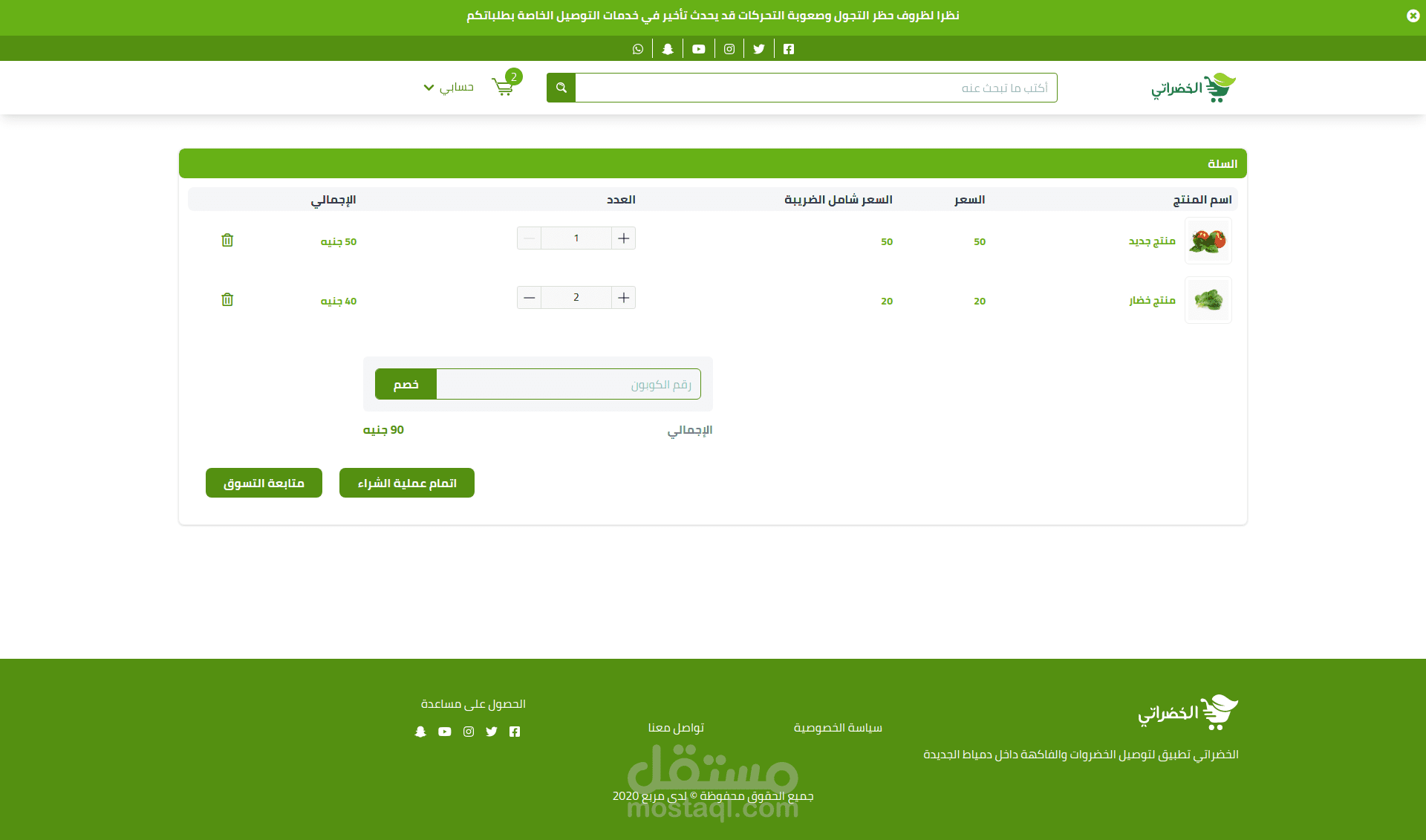 موقع عباره عن متجر لبيع وتوصيل الخضروات خلال فتره زمنيه يقوم مدير الموقع بادخالها ويقوم المستخدم بالاختيار منها وبامكان المستخدم البحث عن المنتج الذي يريد ويقوم الموقع بعرض النتائج بمجرد بدا البحث