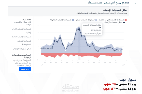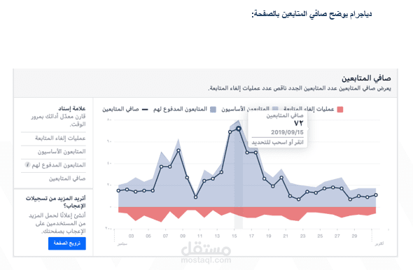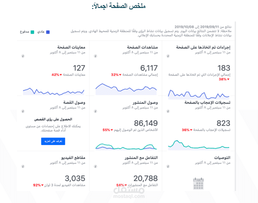 تحليلات صفحة فيس بوك لاحد المشاريع حيث تظهر في التحليلات التغيرات التي طرأت على الصفحة منذ بدأ ادارتها ووصول المنشورات سواء من خلال الاعلانات المدفوعة او من خلال النشر الاحترافي الغير مدفوع، كل هذه التحليلات يتم تلخيصها من قبلي بشكل مبسط لكي يتستطيع العميل فهمها بسهولة.