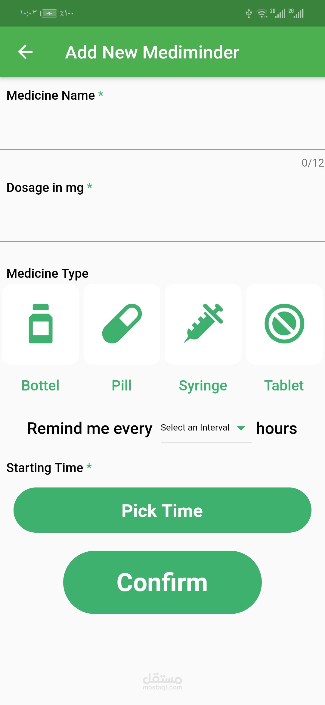 تطبيق خاص بالمريض يضيف اسم الدواء وموعده و كميته