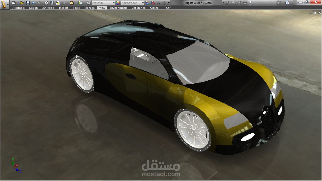 تصميم ثلاثى الابعاد لسياره بوجاتى فيرون باستخدام برنامج Autodesk Invento