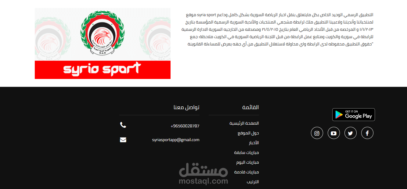 الموقع يعرض آخر أخبار كرة القدم السورية وأخبار الفرق كما أنه يعرض مواعيد المباريات السابقة والقادمة ويعرض ترتيب الفرق