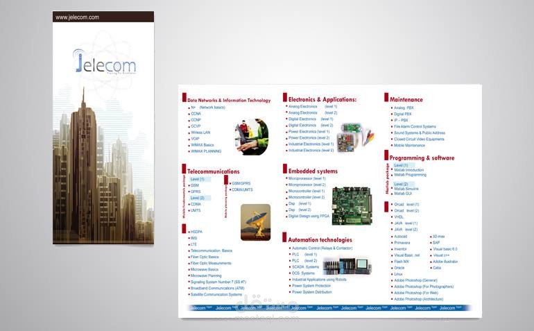 مطوية ثلاثية تعرض خدمات الشركة ومنتجاتها