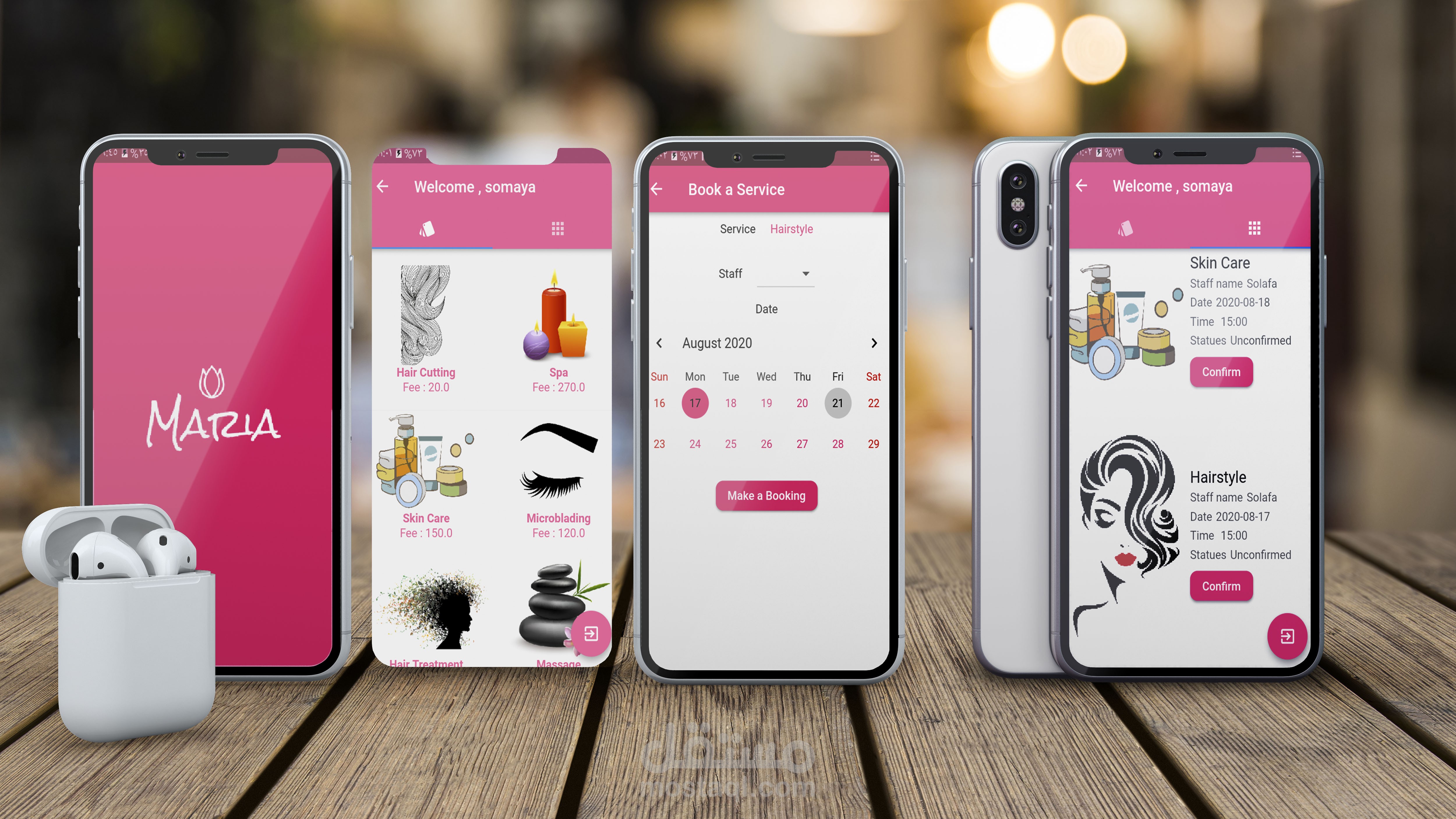 تطبيق ماريا هو تطبيق حجوزات لصالون نسائي لحجز خدمة معينة مع موظف في يوم وتاريخ محددين !!