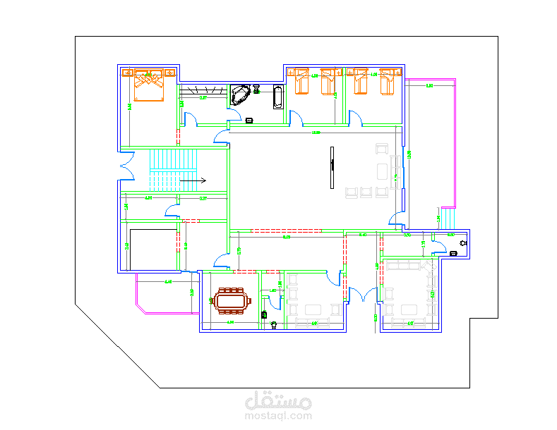 تصميم معماري لفيلا سكنية مع توضيح الفراغات عليها
