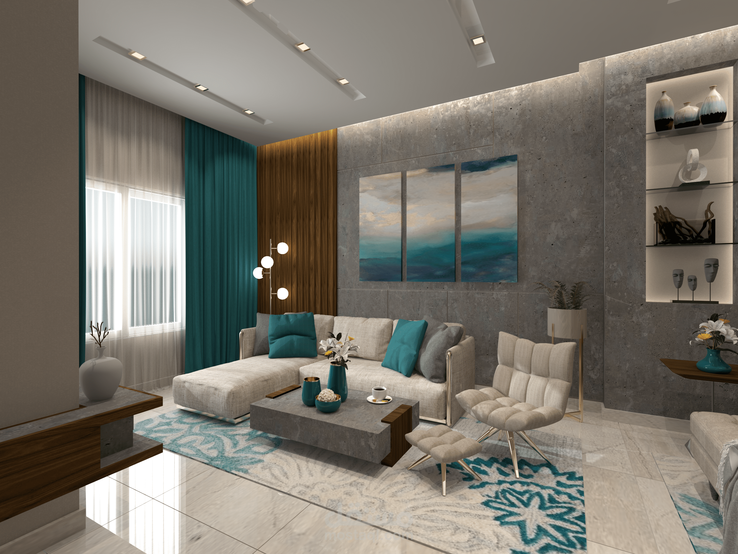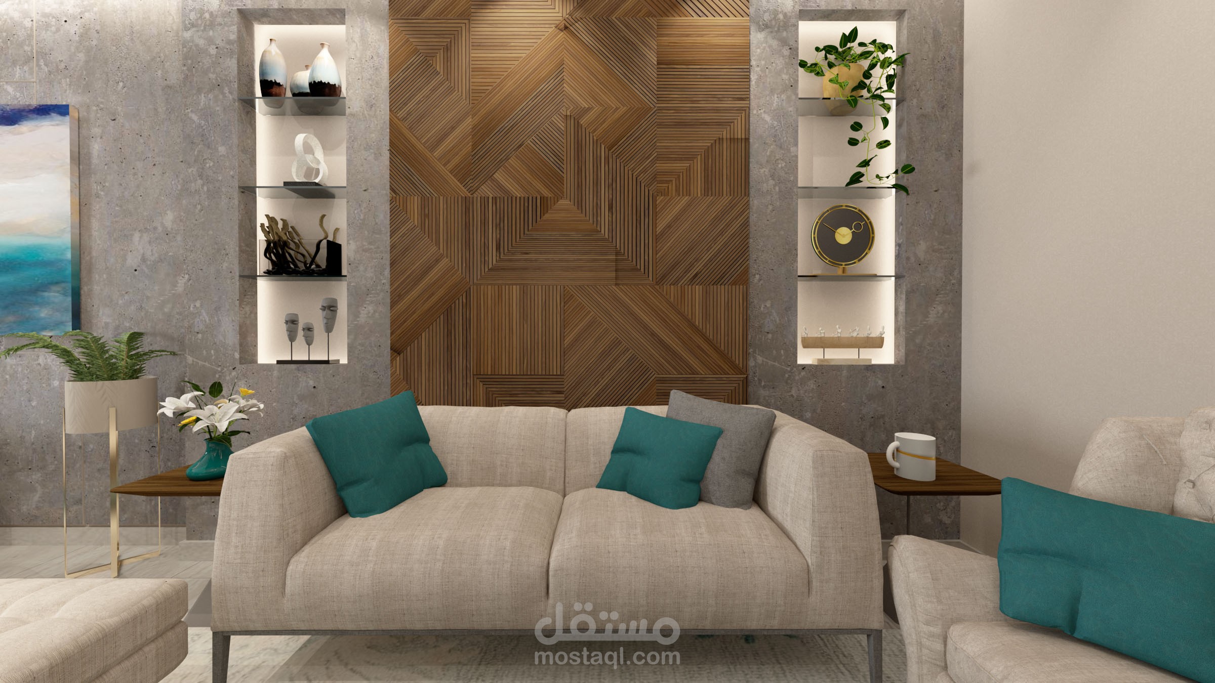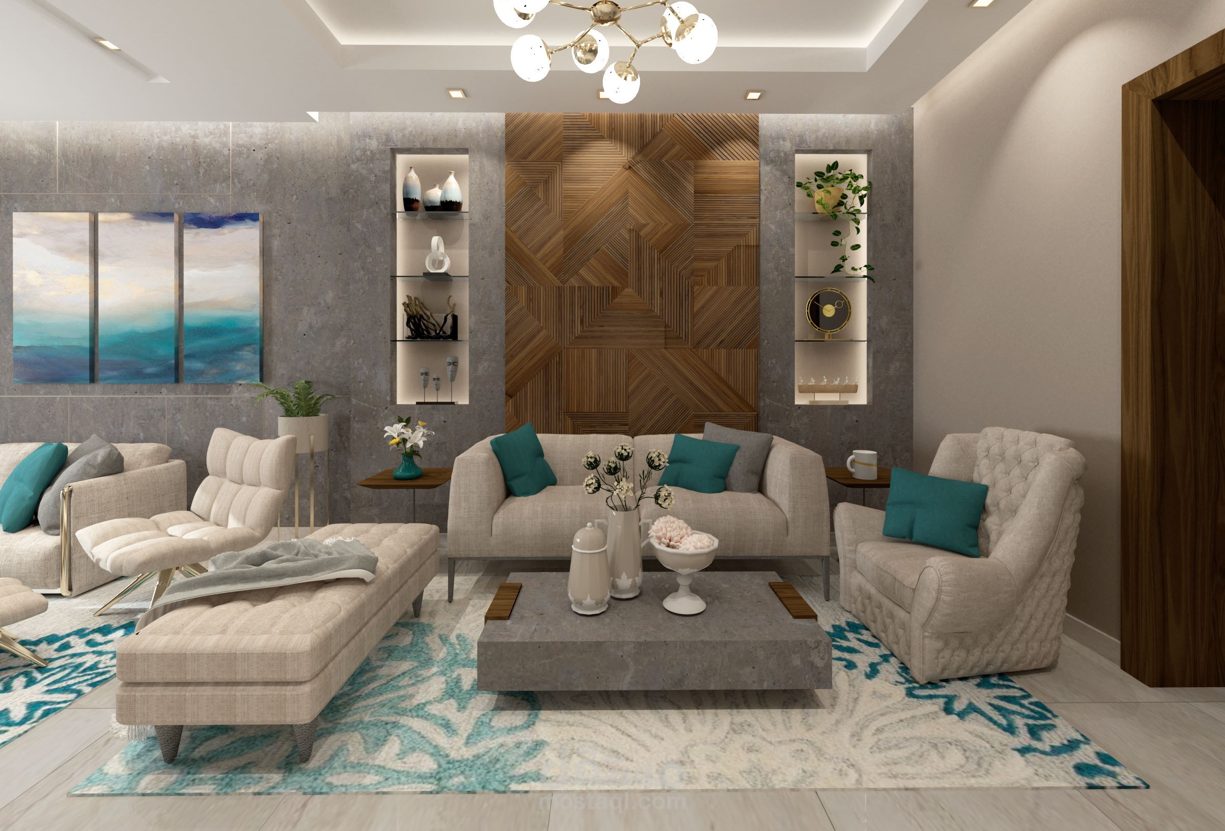 تصميم منطقة صالون ومعيشة فى شقة بالتجمع الخامس