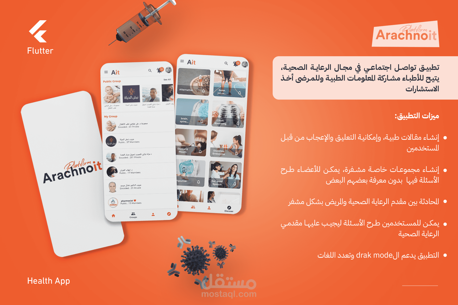 تطبيق تواصل اجتماعي في مجال الرعاية الصحية، يتيح للأطباء مشاركة المعلومات الطبية وللمرضى أخذ الاستشارات: ميزات التطبيق: