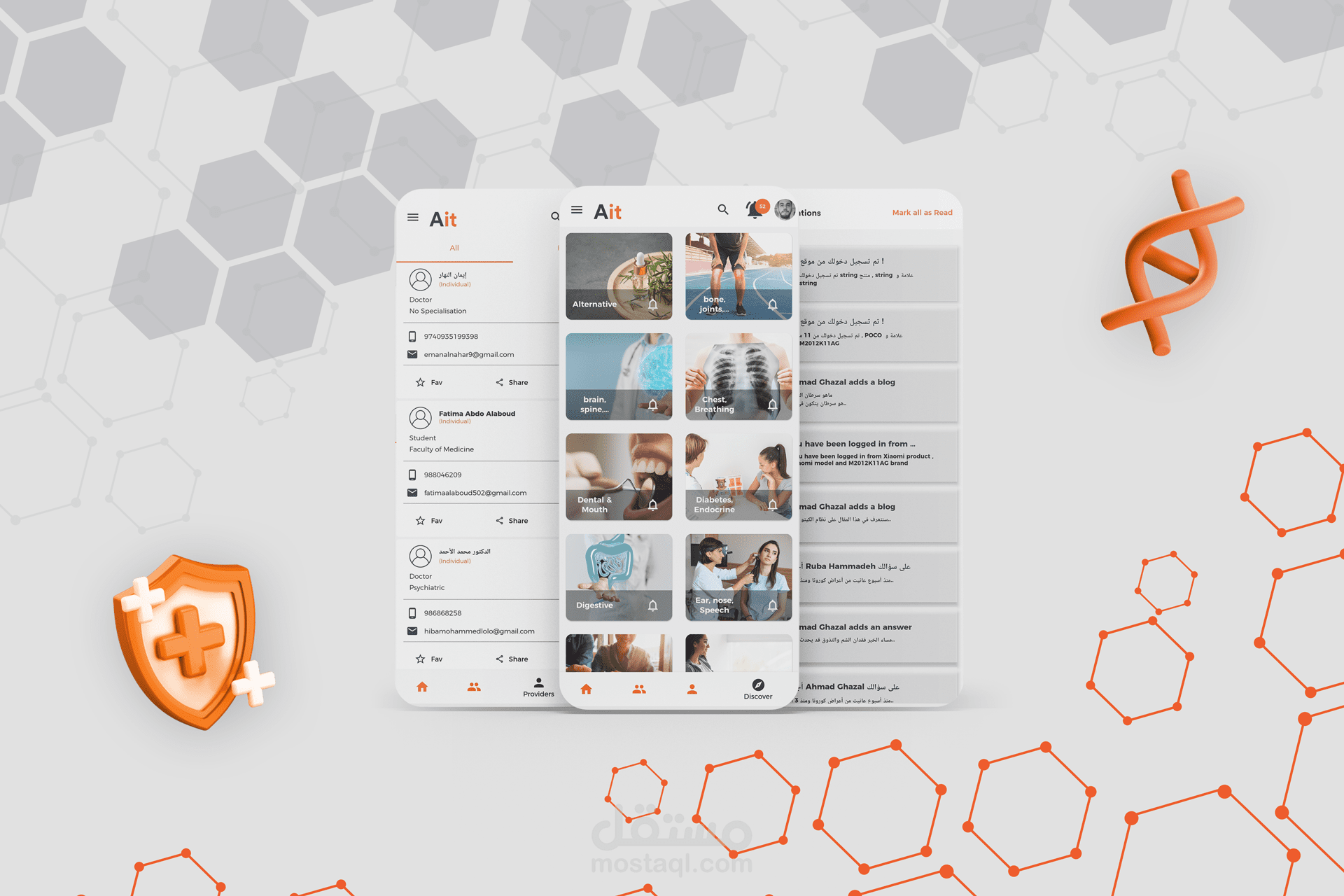 - إنشاء مقالات طبية، وإمكانية التعليق والإعجاب من قبل المستخدمين