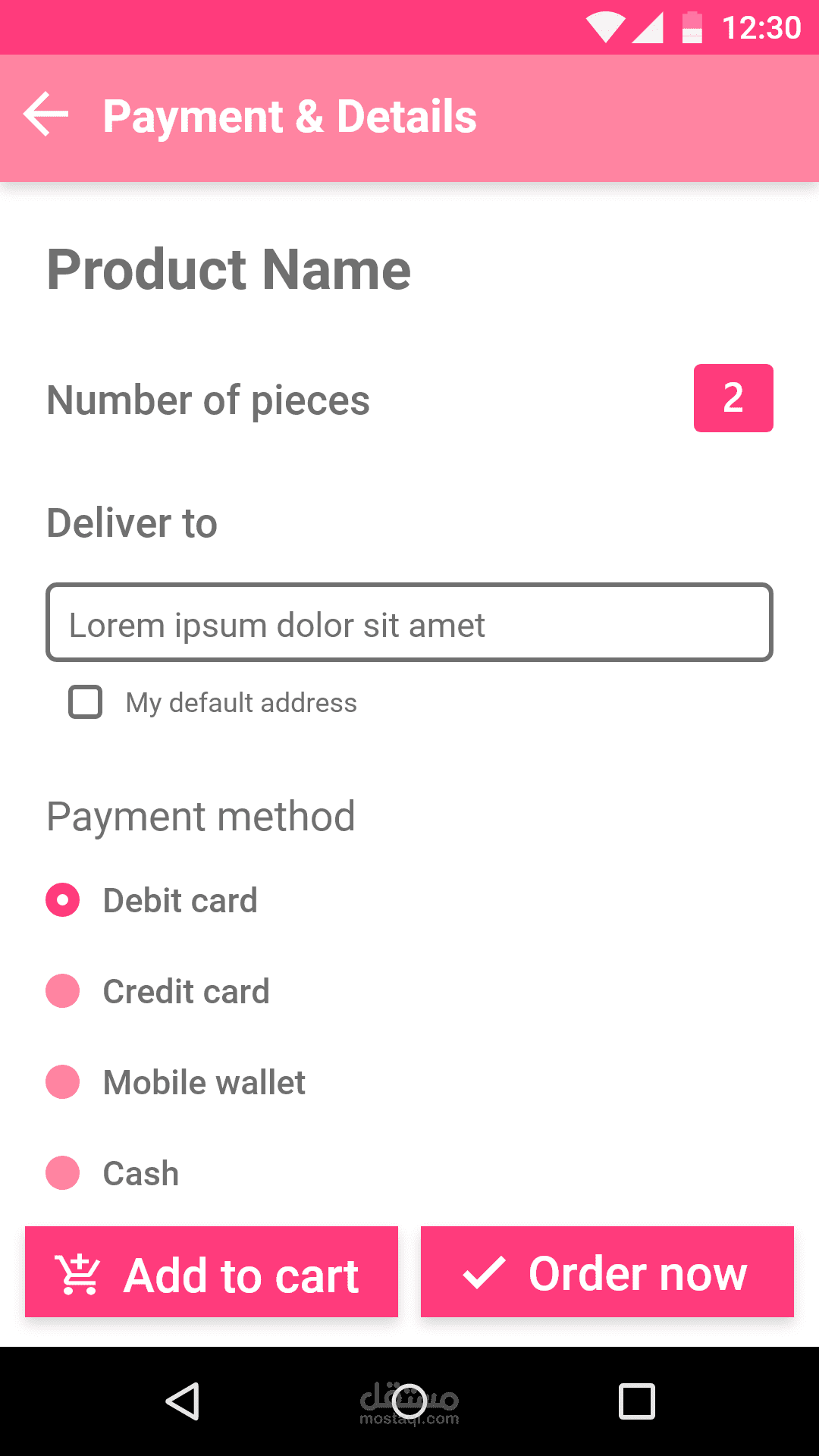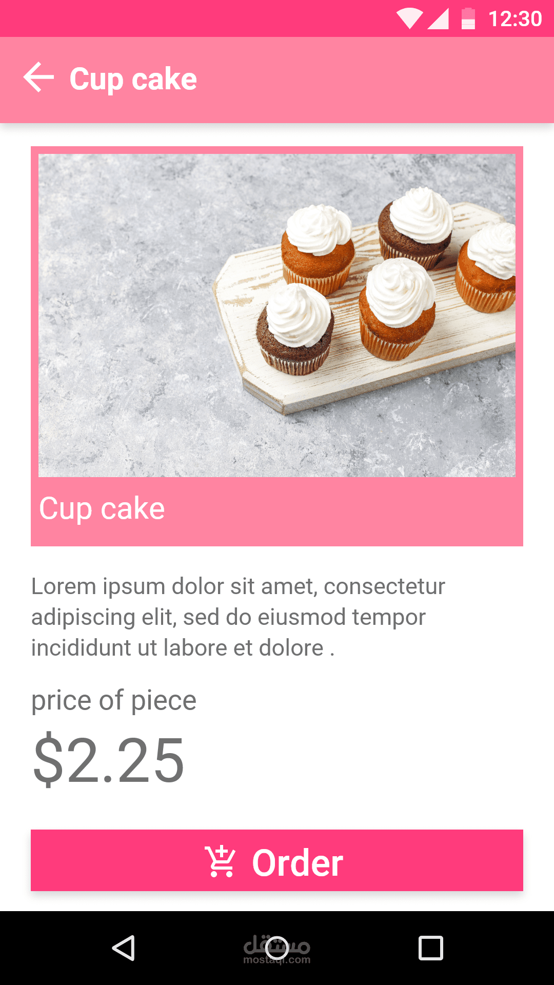 عمل افتراضي لتصميم واجهة تطبيق لبيع و توصيل الحلويات
