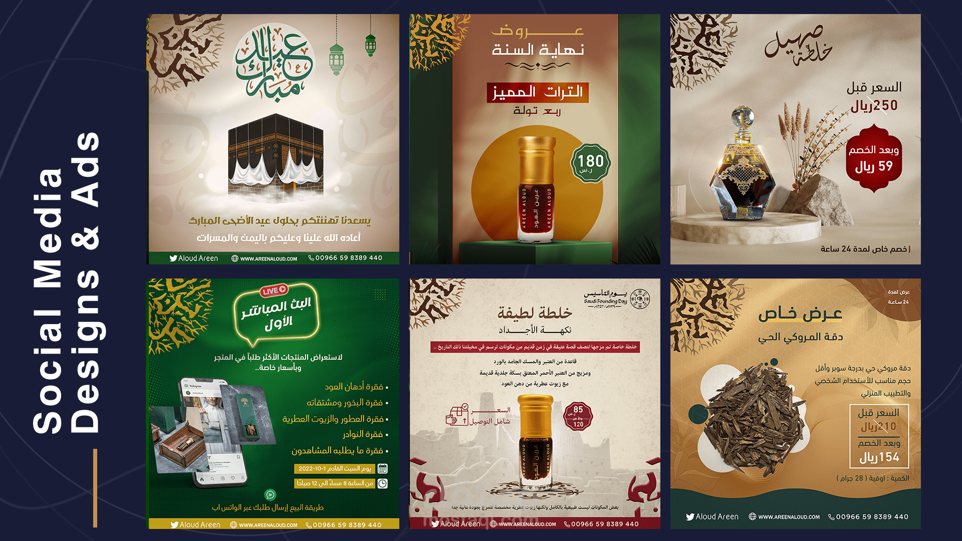 تصاميم سوشيال ميديا لمتجر خاص بالعود بالسعودىة