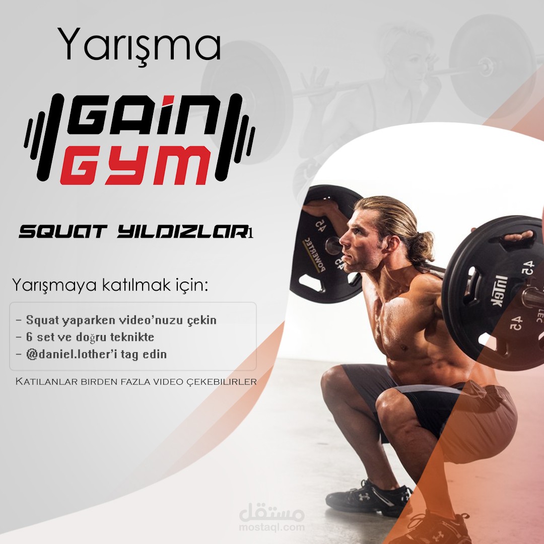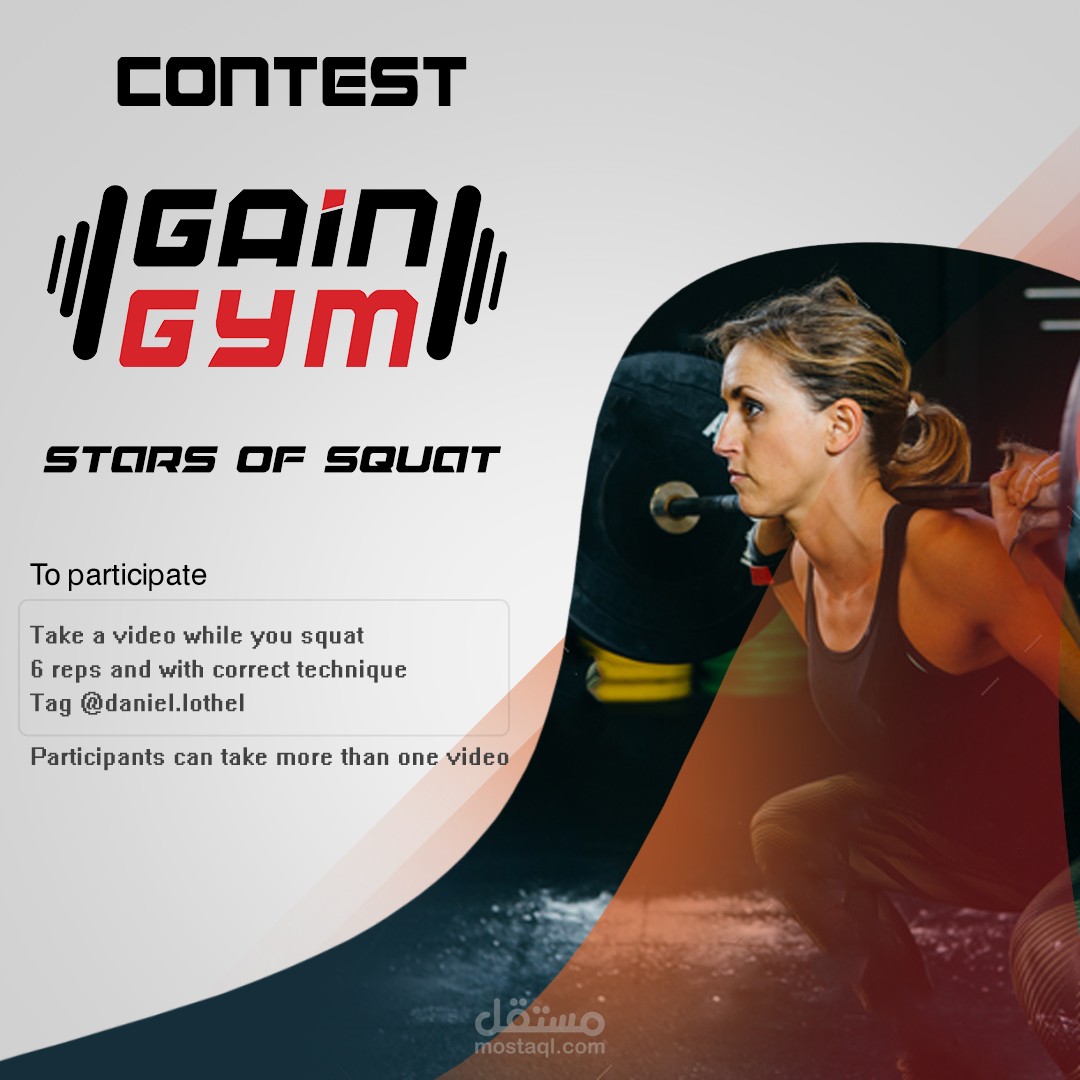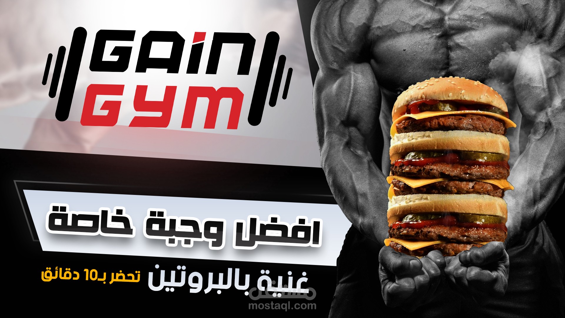 تصميم الشعار لقناة gain gym وصور لمحتوى القناة وباقي الفعاليات
