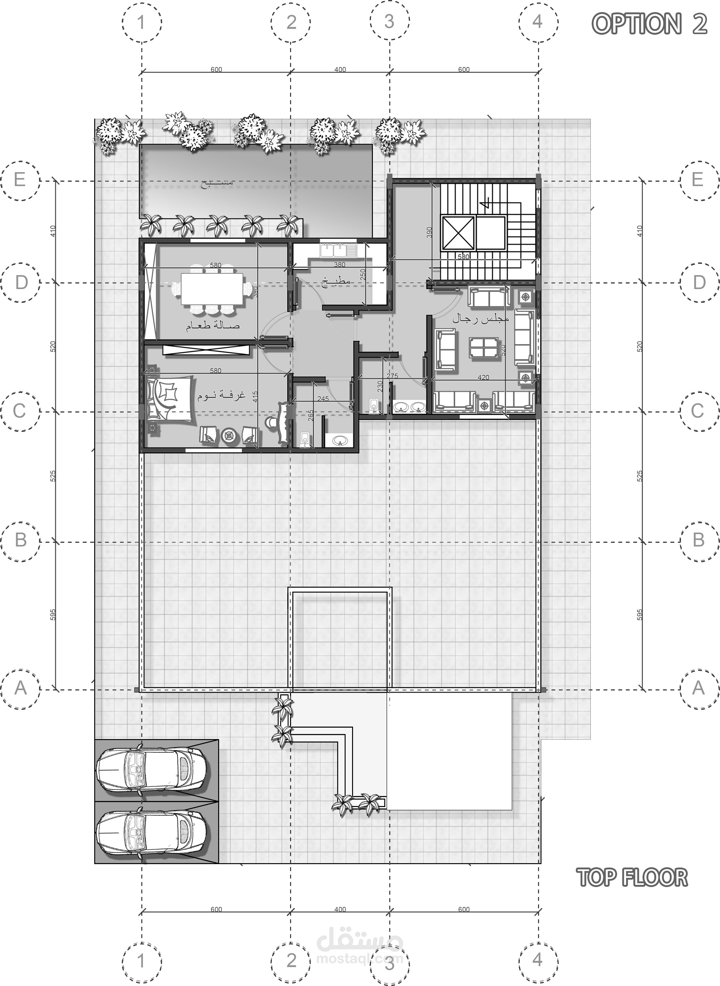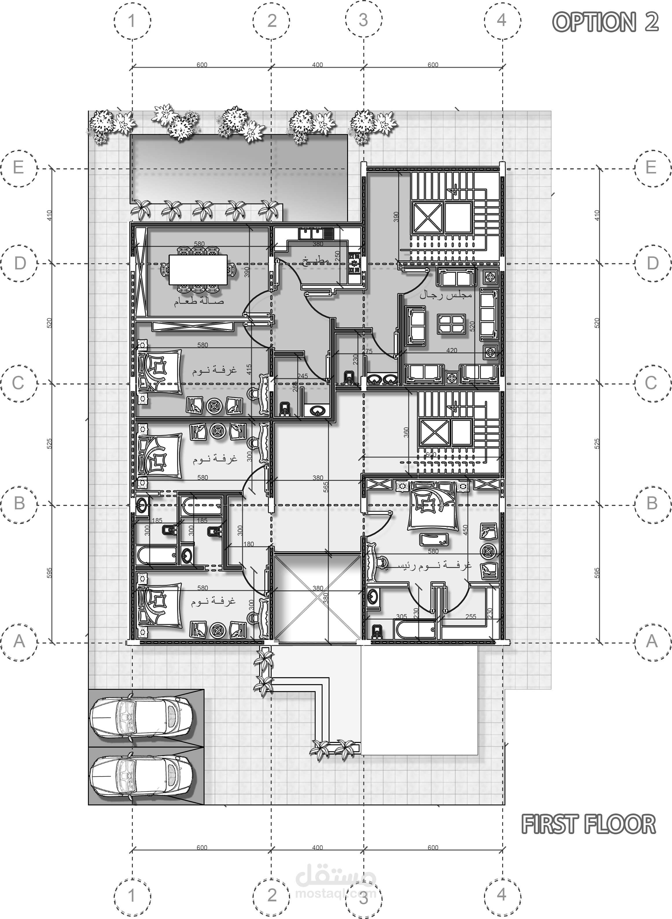 تخطيط معماري لفيلا في السعودية (الارضي والاول) وجزء من الطابق الأول والملحق عبارة عن شقتين