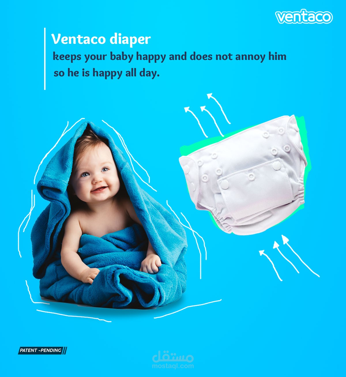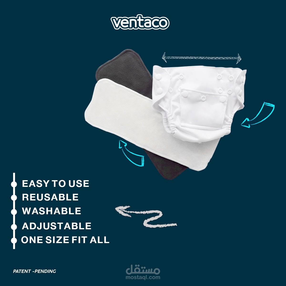 في هذا العمل , قمت بتصميم بوستات أبداعية للسوشيال ميديا لمؤسسة VENTACO المتخصصة في الحفاظات القابلة للتغيير , العمل تضمن أكثر من 30 تصميم موجه للتسويق و ايصال فكرة المنتج بطريقة ابداعية .