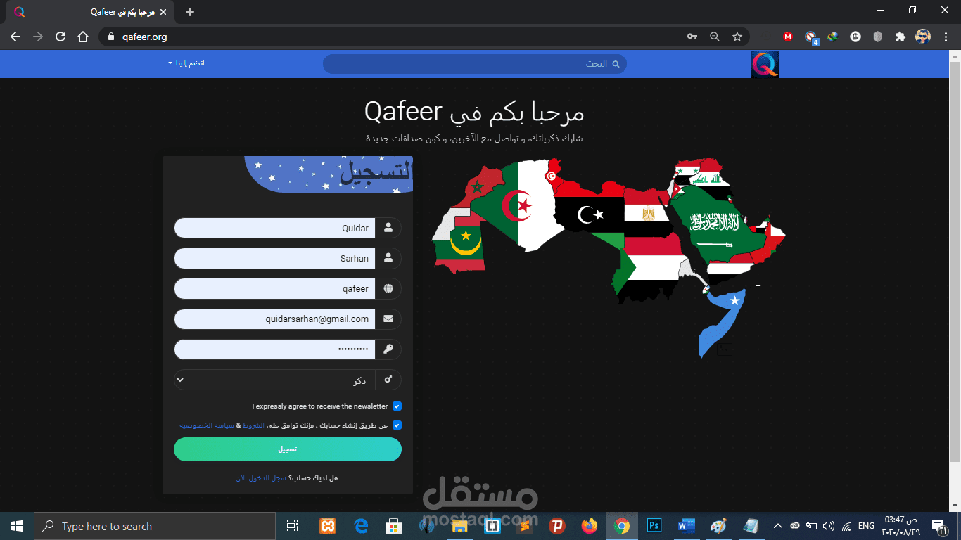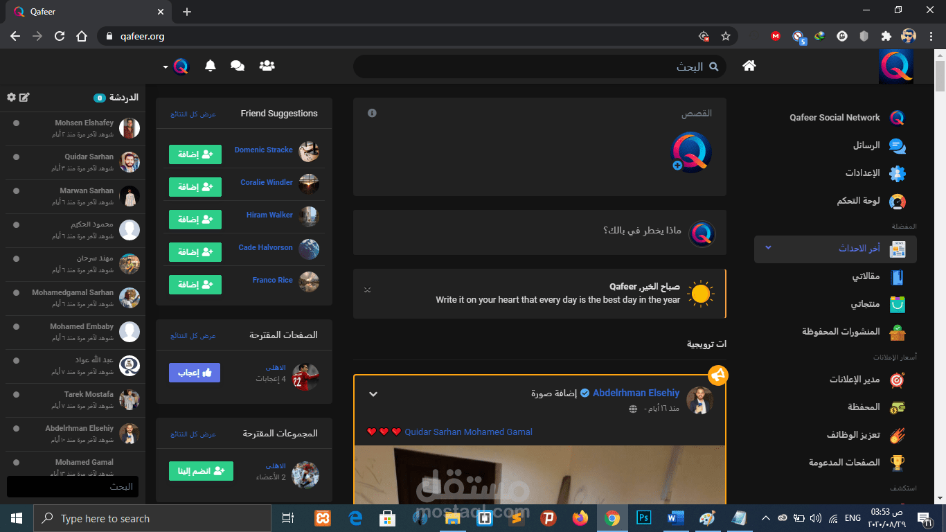 موقع شبكة تواصل اجتماعي عربية الثقافة “Qafeer” Social Network Specially for Arab.
