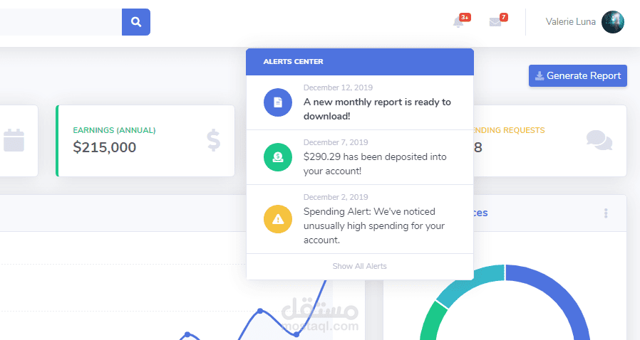 عباره عن لوحه تحكم كامله بها جميع الاحصائيات الموجوده في الموقع في شكل بياني