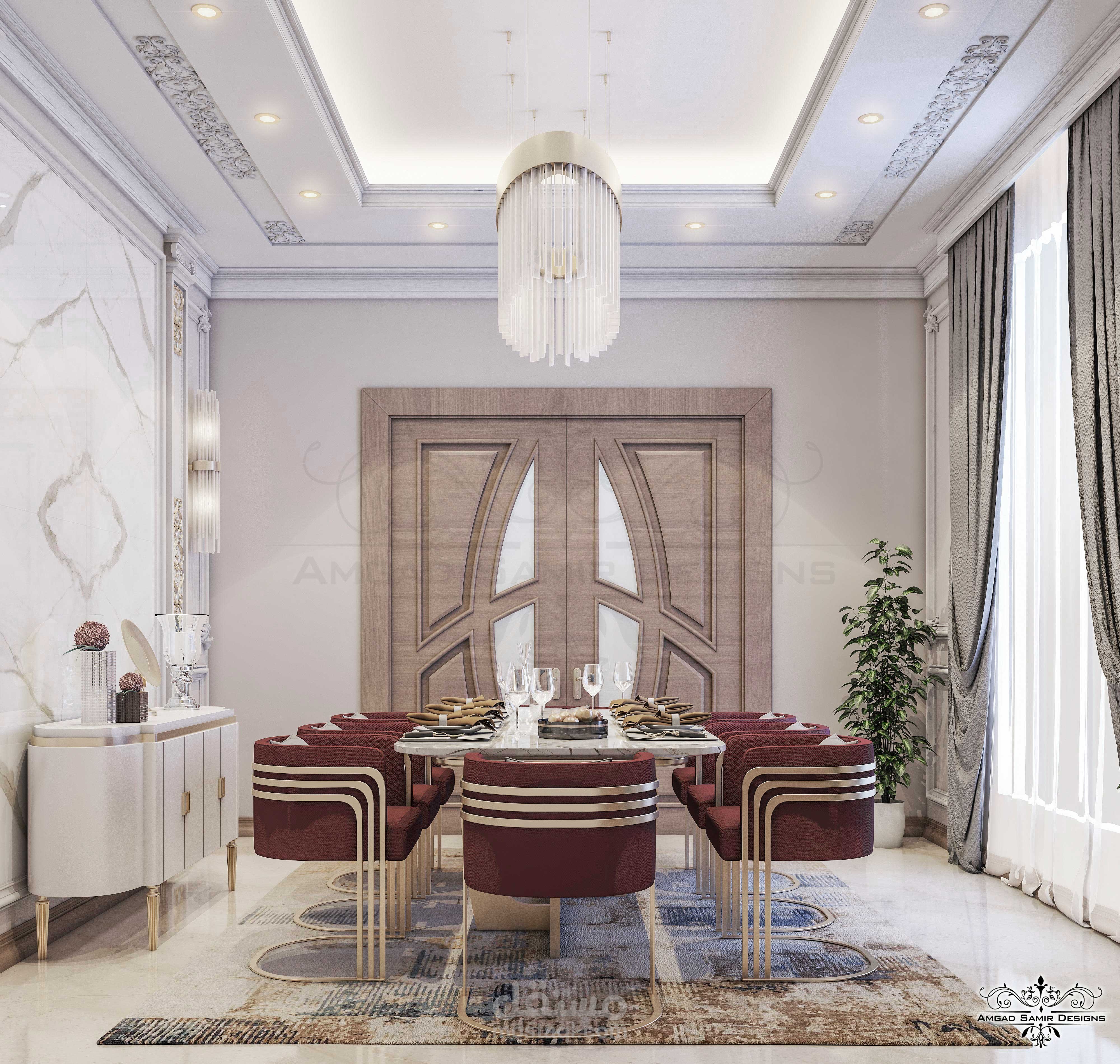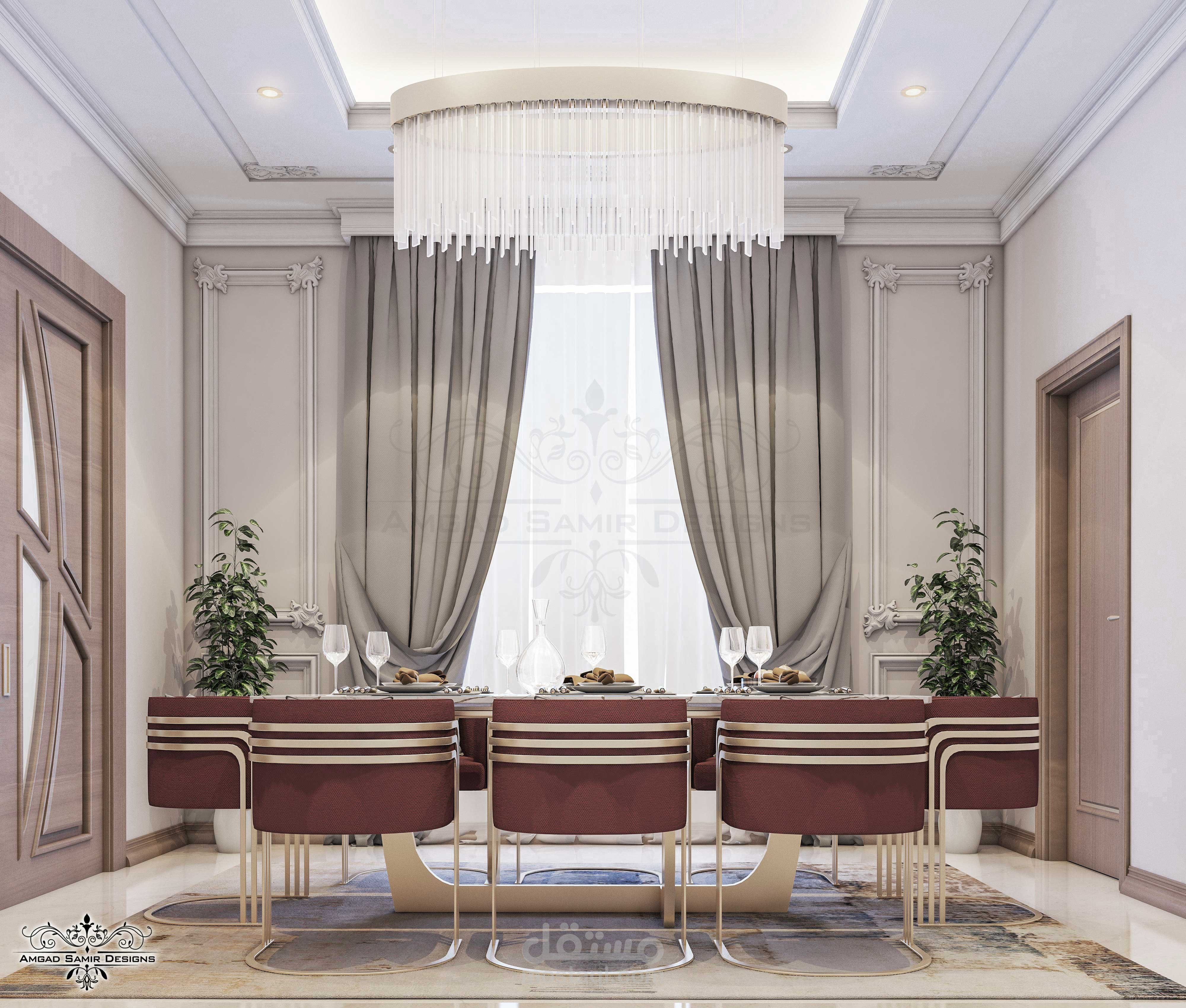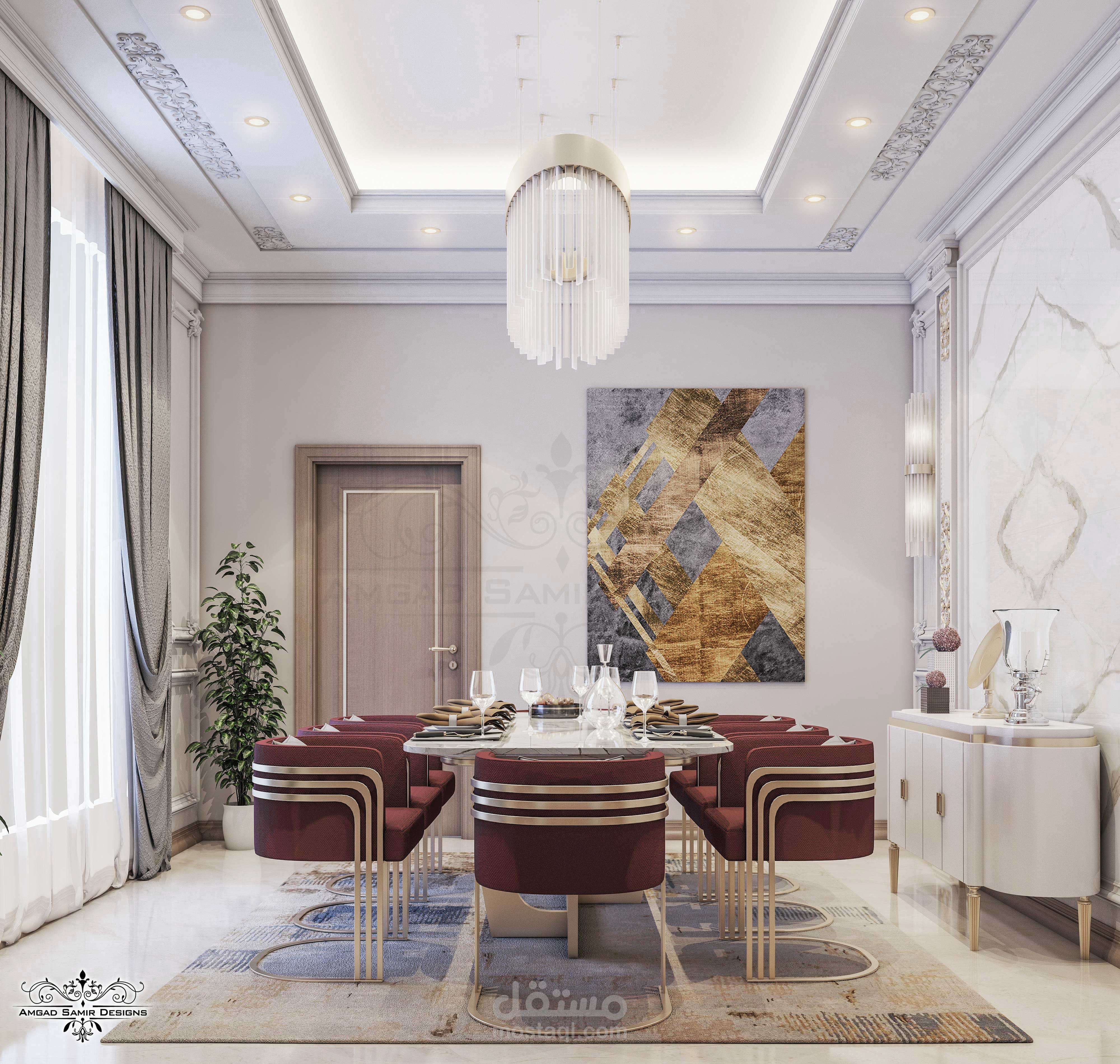 احدث الاعمال تصميم نيوكلاسيك مودرن لغرفة طعام فيلا بالرياض ..