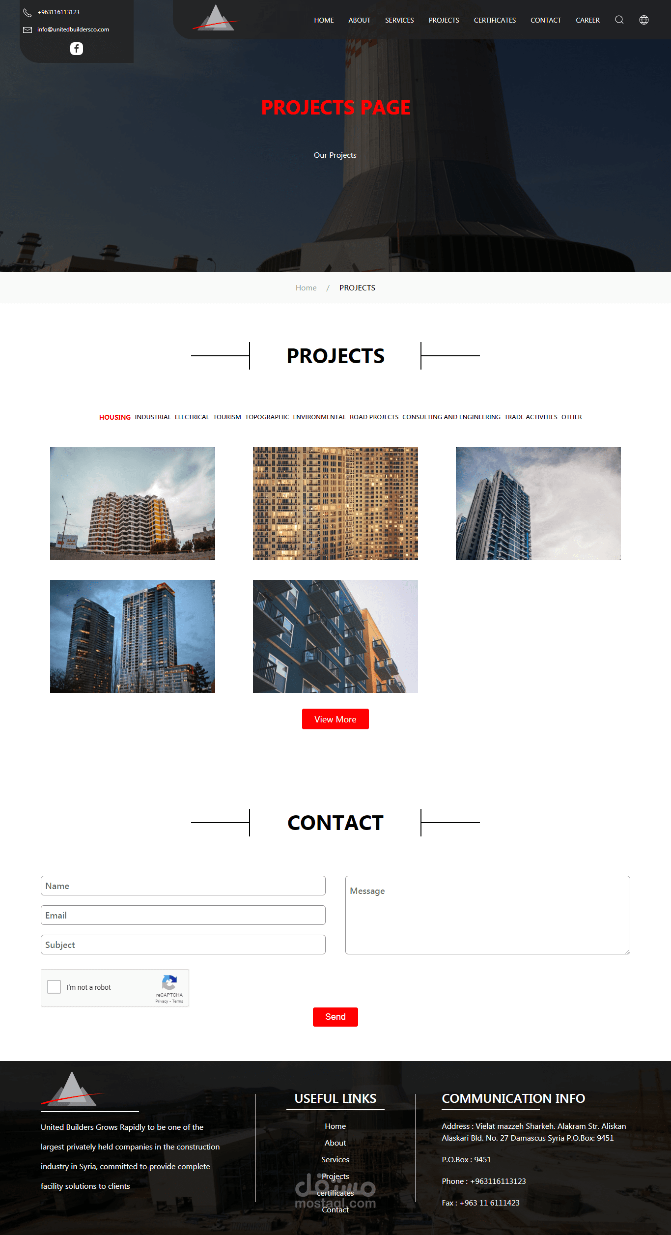الموقع لشركة بناء يعرض خدمات الشركة والمشاريع المنجزة من قبل الشركة ونبذة تعريفية عنها