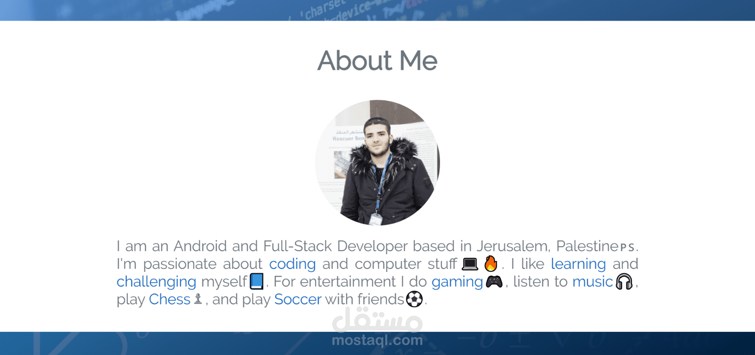 Responsive Personal Website (Portfolio). Features: Vue.js, Responsive, HTML, CSS, JavaScript.