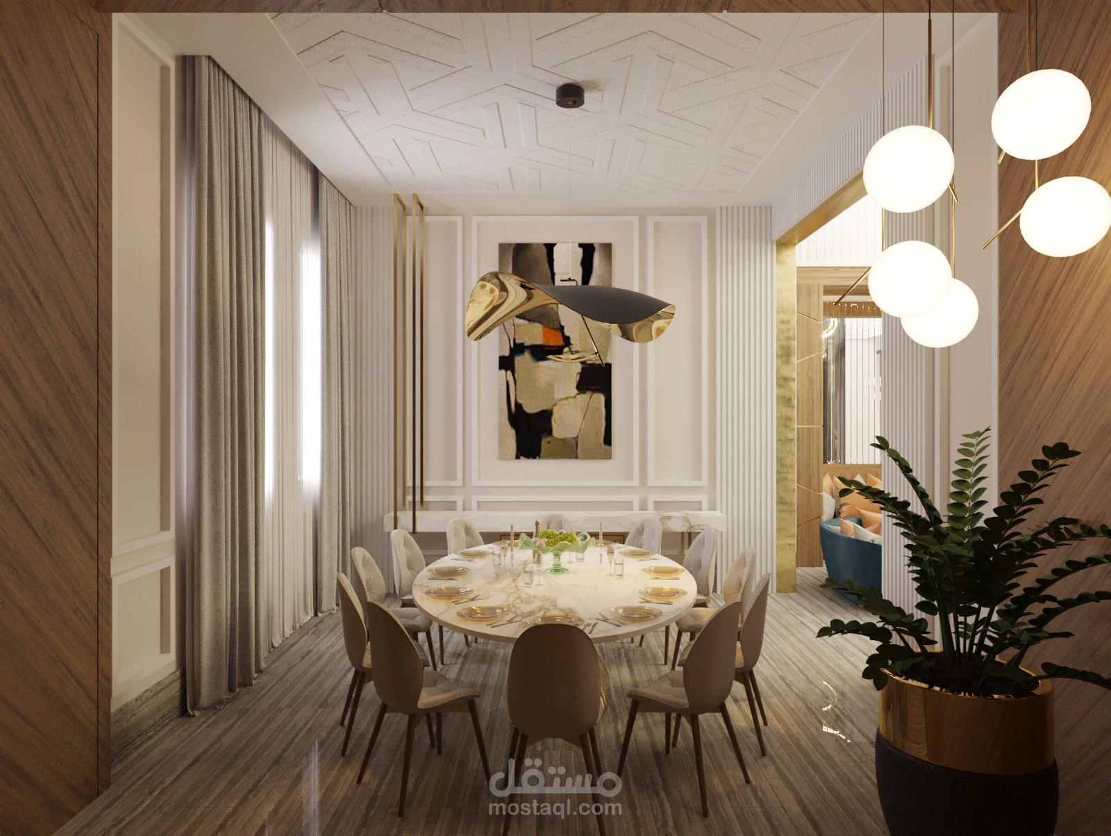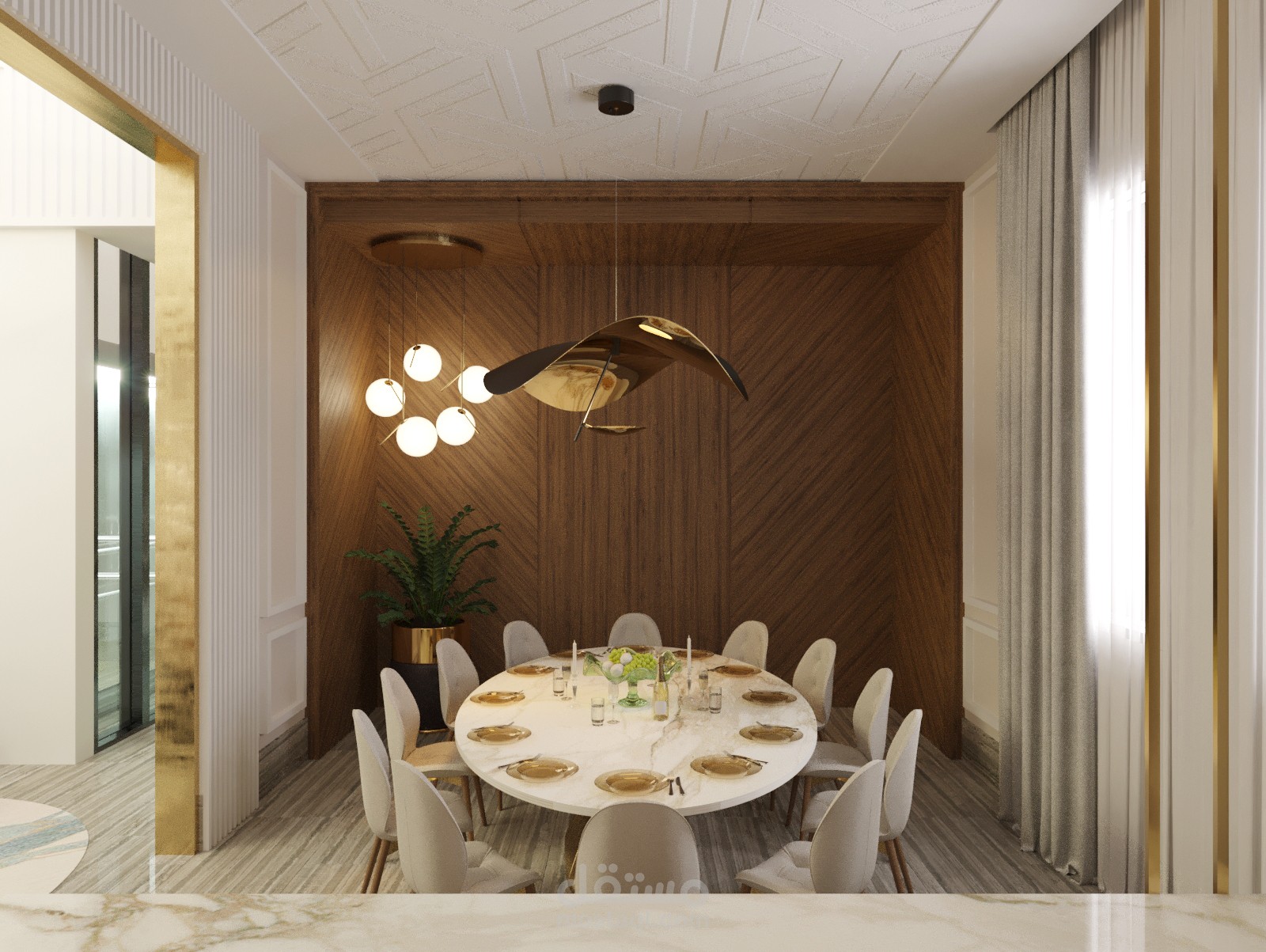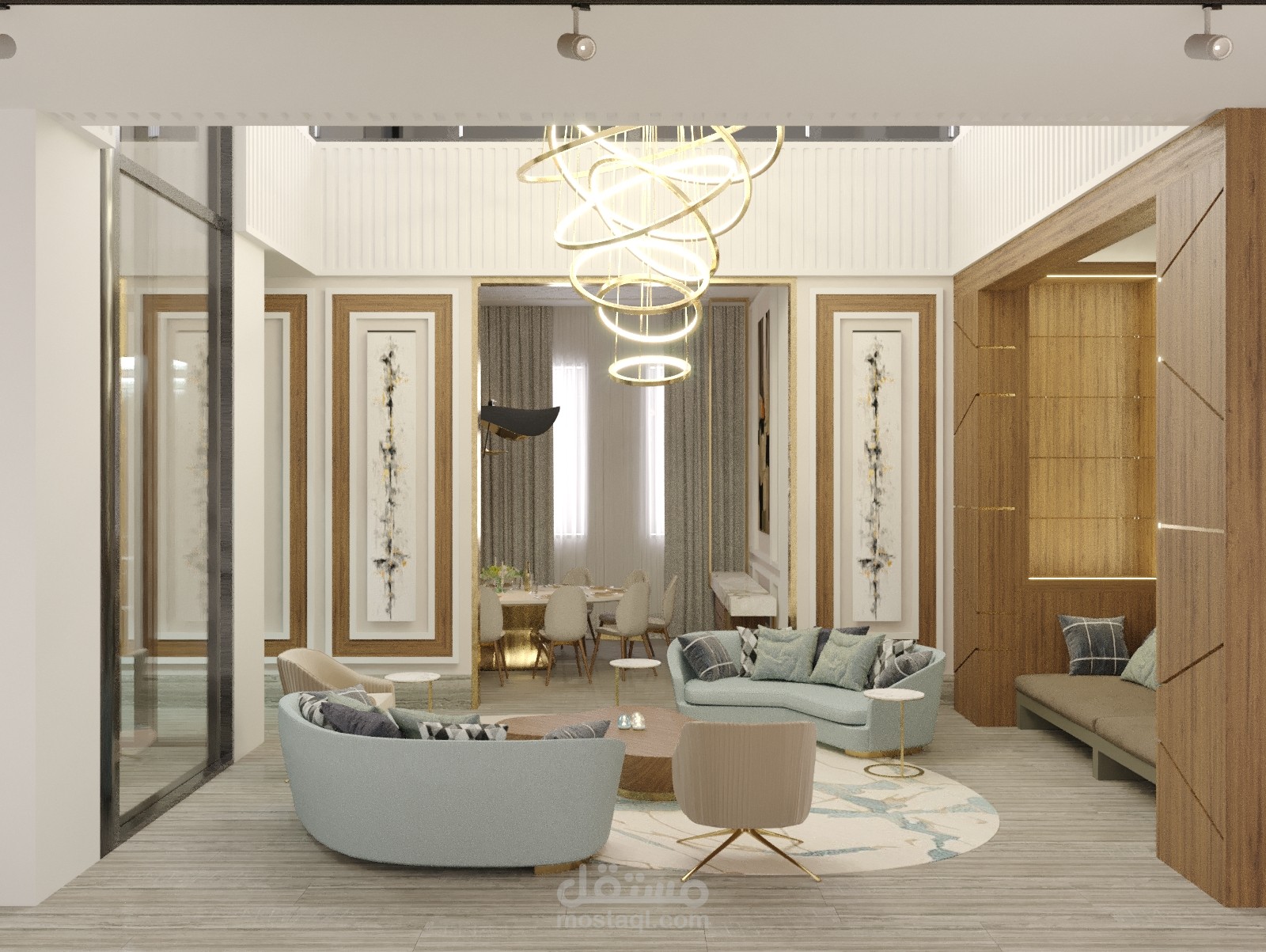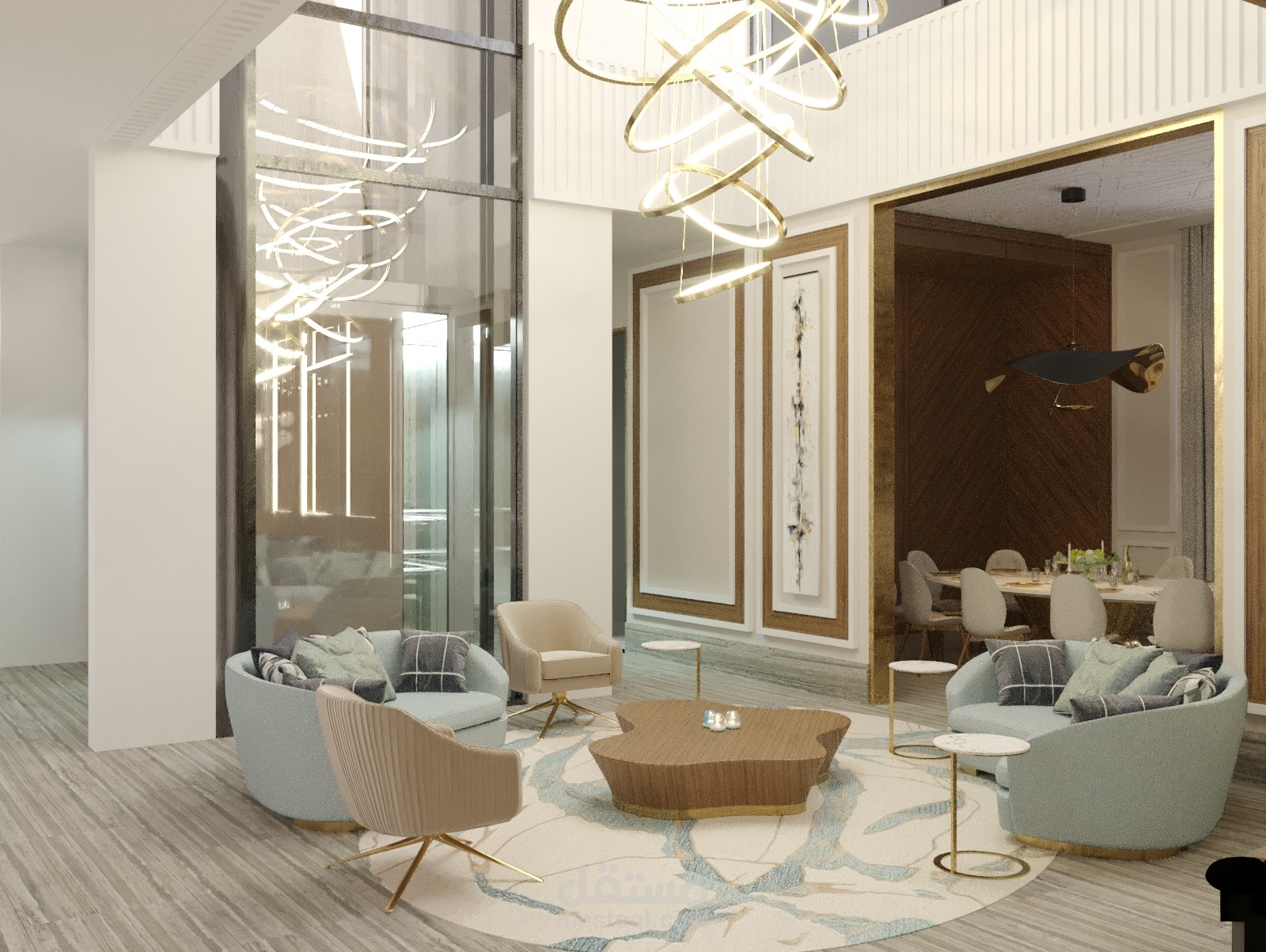 تصميم داخلي لمدخل فيلا وغرفة جلوس اضافة لغرفة طعام في الامارات