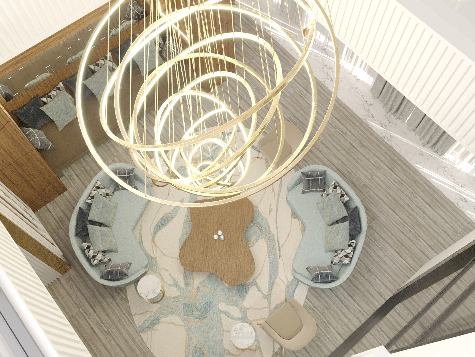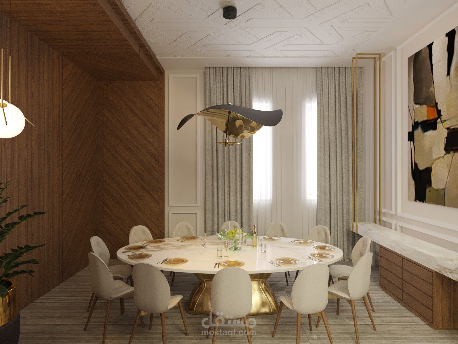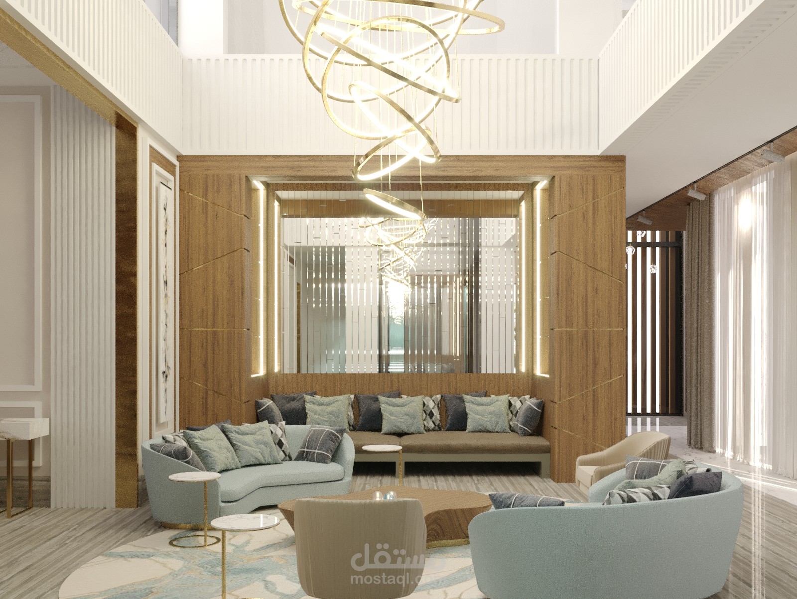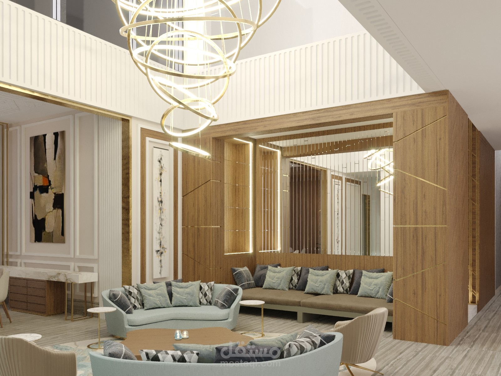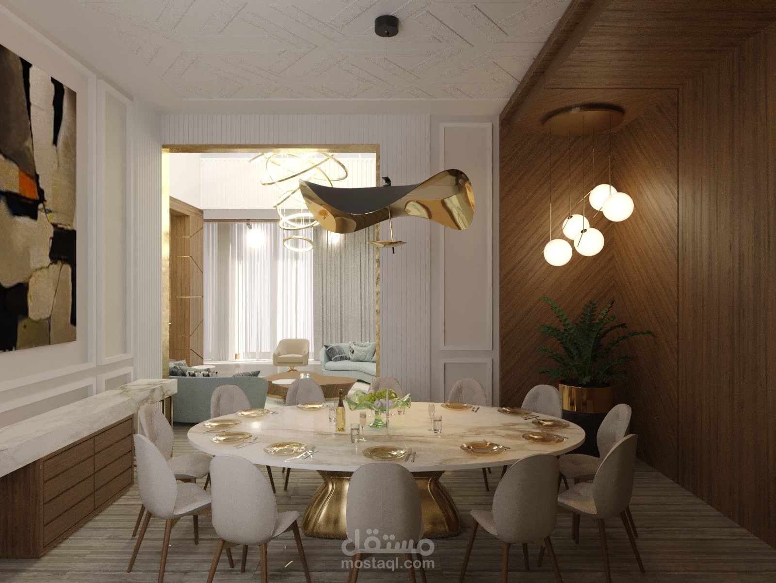 تصميم داخلي لمدخل فيلا وغرفة جلوس اضافة لغرفة طعام في الامارات